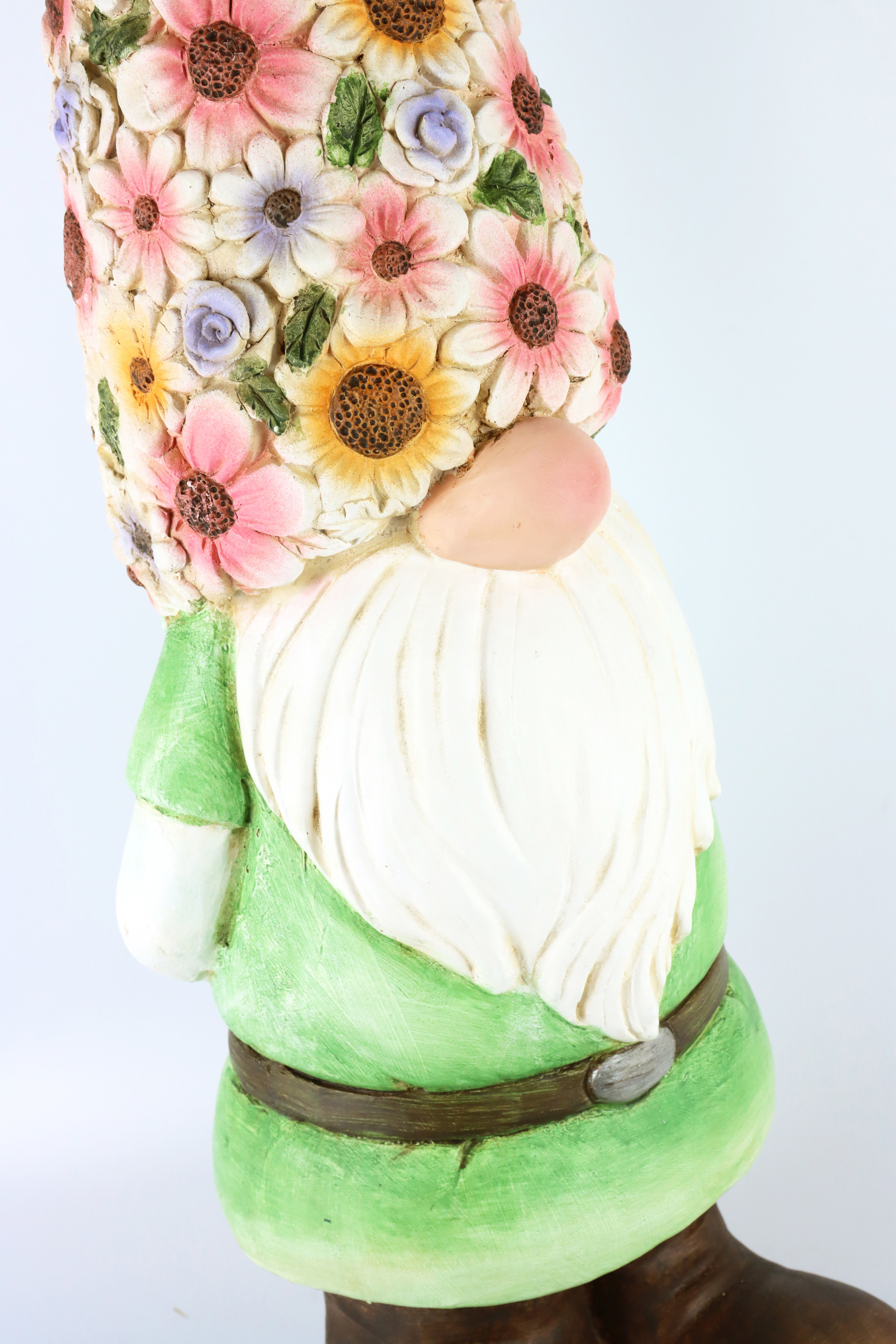Vivete la magia della primavera e dell'estate con il nostro incantevole gnomo dei fiori, un pezzo decorativo unico che creerà un'atmosfera primaverile in qualsiasi giardino o zona giorno. Con una dimensione impressionante di circa 97 cm, questa simpatica figura in fibra di argilla catturerà sicuramente l'attenzione di tutti e sarà un elemento indispensabile nelle vostre decorazioni stagionali.