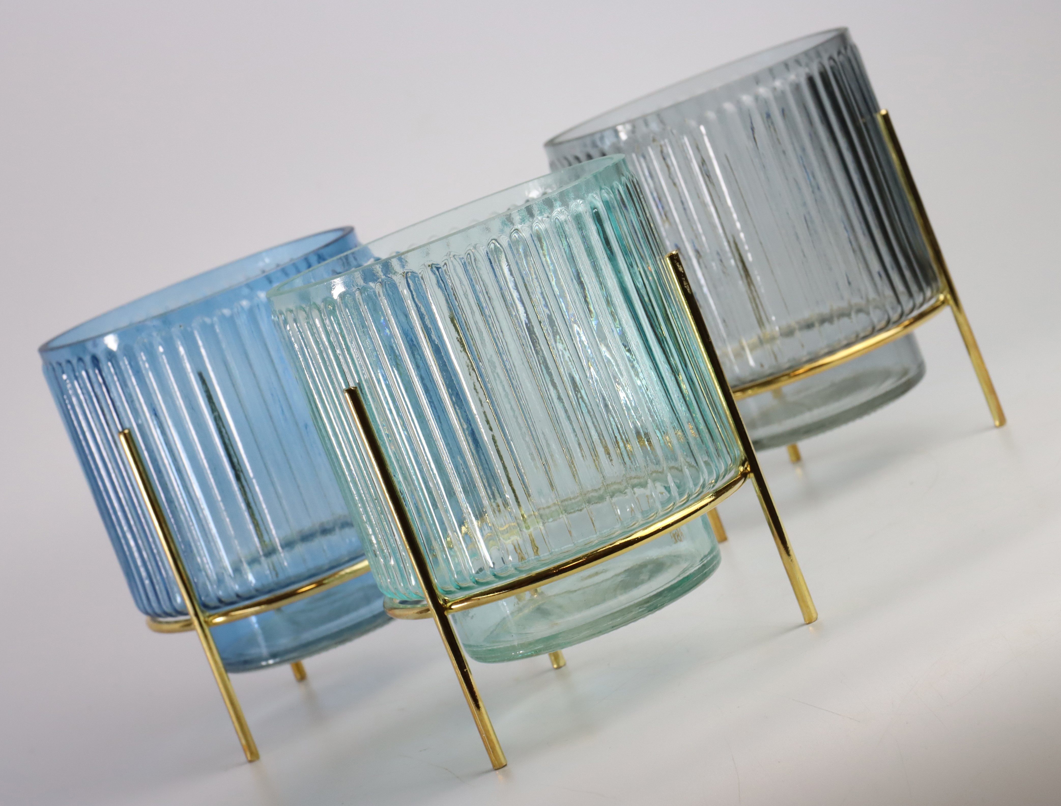 Immergetevi nel magico mondo della luce con il nostro elegante set di 3 pezzi "WIND LIGHTS ON STAND 'AQUA'". Queste eleganti lanterne sono state progettate appositamente per la magia della primavera e dell'estate e portano una fresca brezza di blu marino in ogni casa. Realizzate con materiali di alta qualità, tra cui vetro robusto e ferro, sono perfettamente abbinate per dare al vostro spazio vitale un'atmosfera invitante e lussuosa.