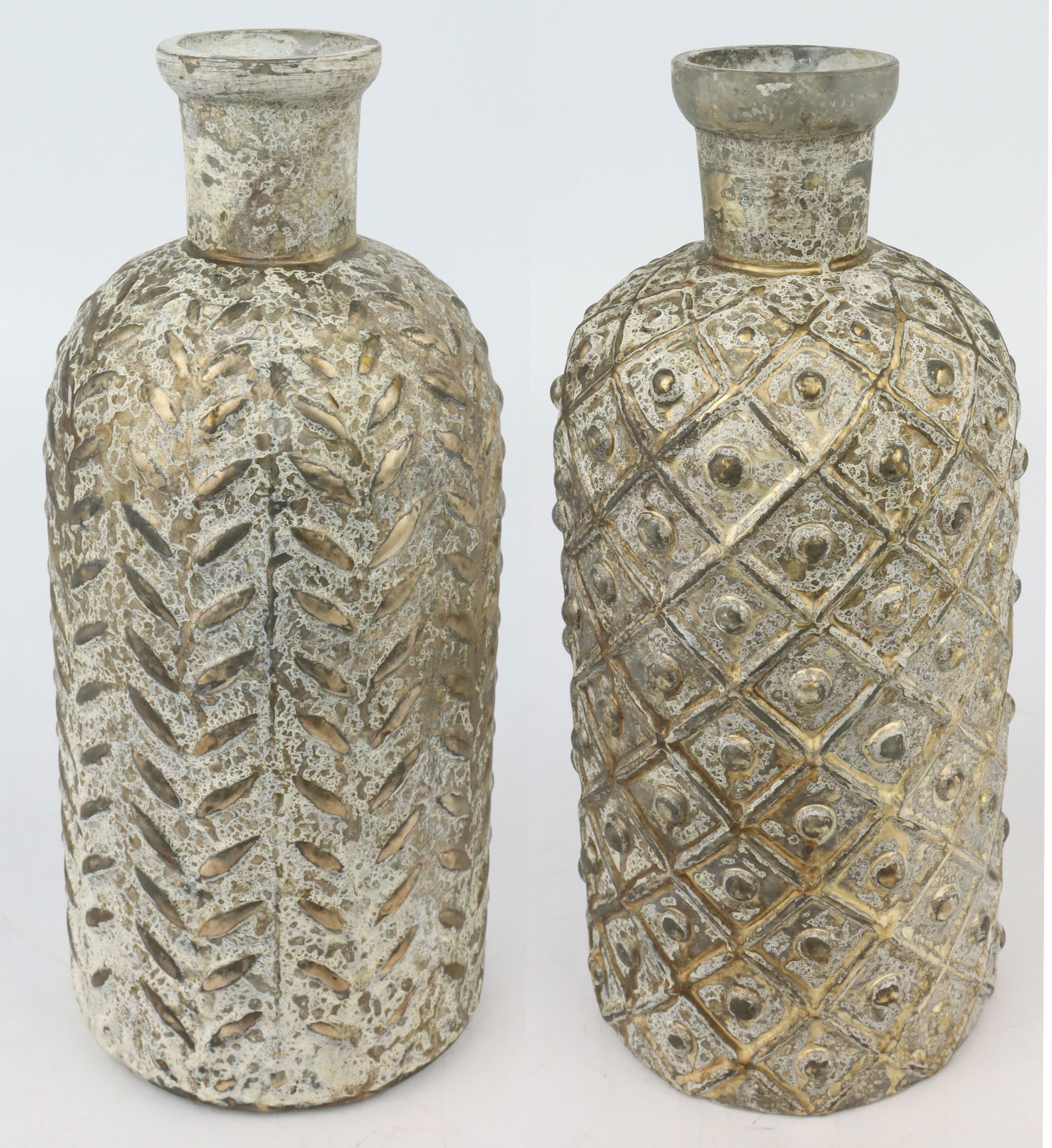 I vasi a bottiglia "Loire" S/2 sono un set di 2 pezzi di vasi antichi, finemente lavorati in un contenitore di vetro trasparente. La loro altezza di circa 23 cm aggiungerà immediatamente stile ed eleganza alla vostra decorazione. Realizzati con cura e attenzione ai dettagli, la loro qualità è impareggiabile e rappresenta una forte affermazione del vostro impegno verso l'eccellenza negli accessori per la casa.