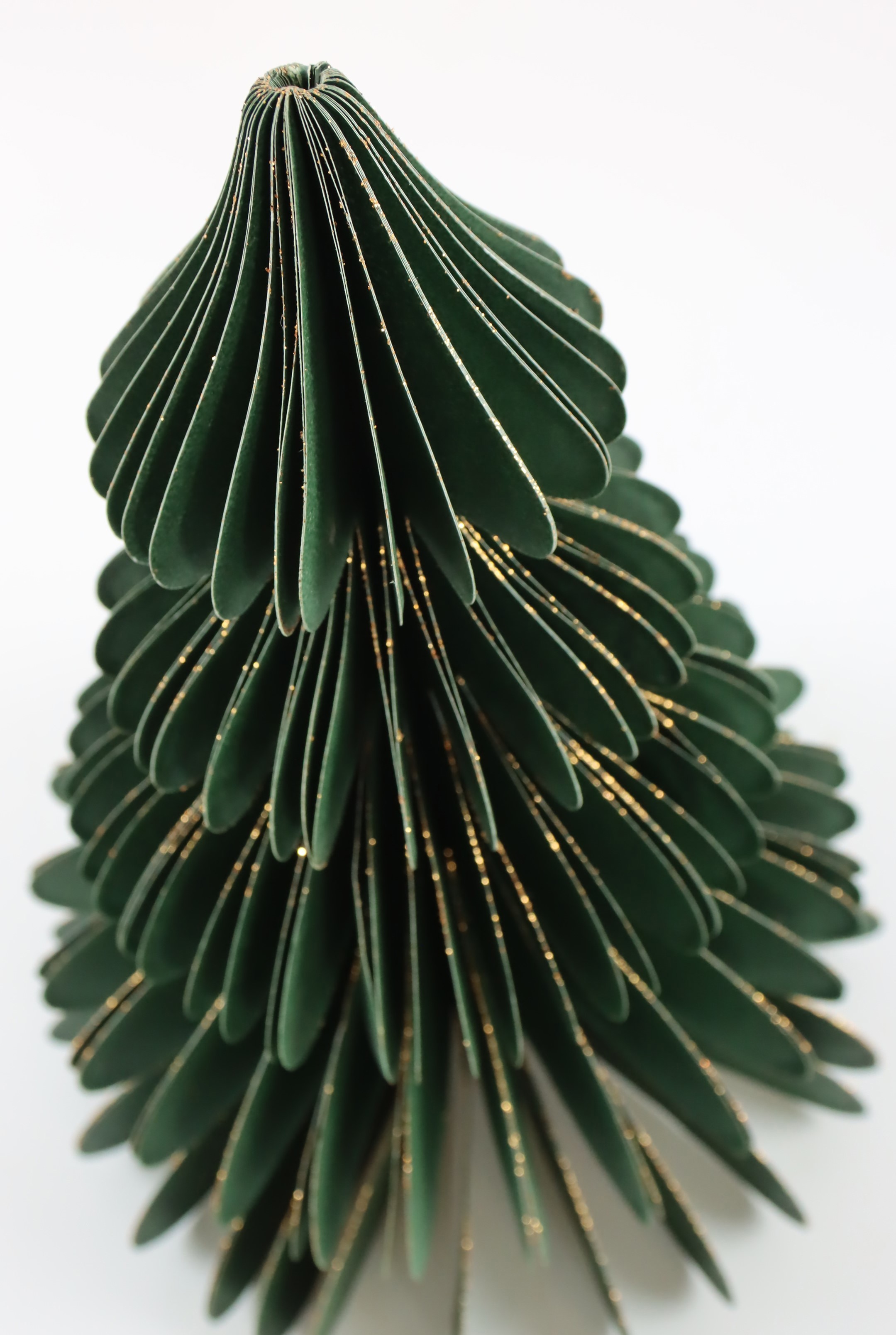 Il nostro ALBERO DECORATIVO "HONEYCOMB" è alto circa 25 cm ed è perfetto per le decorazioni da tavola, i davanzali delle finestre o come affascinante accessorio per la vostra vetrina festiva. Realizzato in carta di alta qualità, questo albero di Natale pieghevole è caratterizzato da una struttura robusta e da un design sostenibile. Il colore verde scuro conferisce un aspetto naturale, mentre la struttura a nido d'ape aggiunge un tocco di modernità.