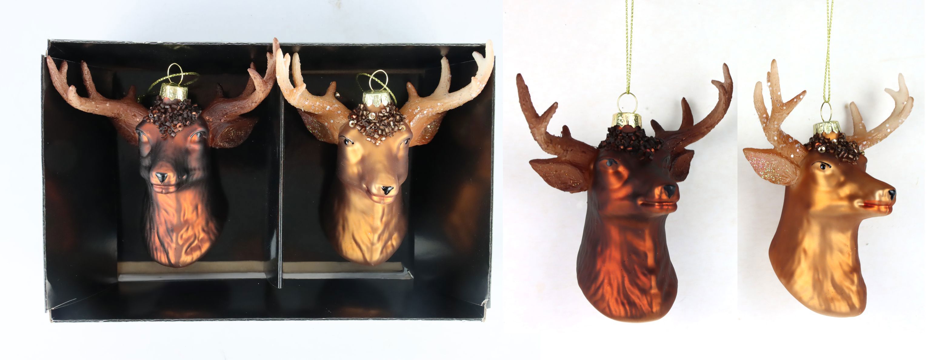 IT**Descrizione del prodotto: Gioielli in vetro "Testa di cervo" in set da 2 - Eleganza in vetro per un ambiente festivo**