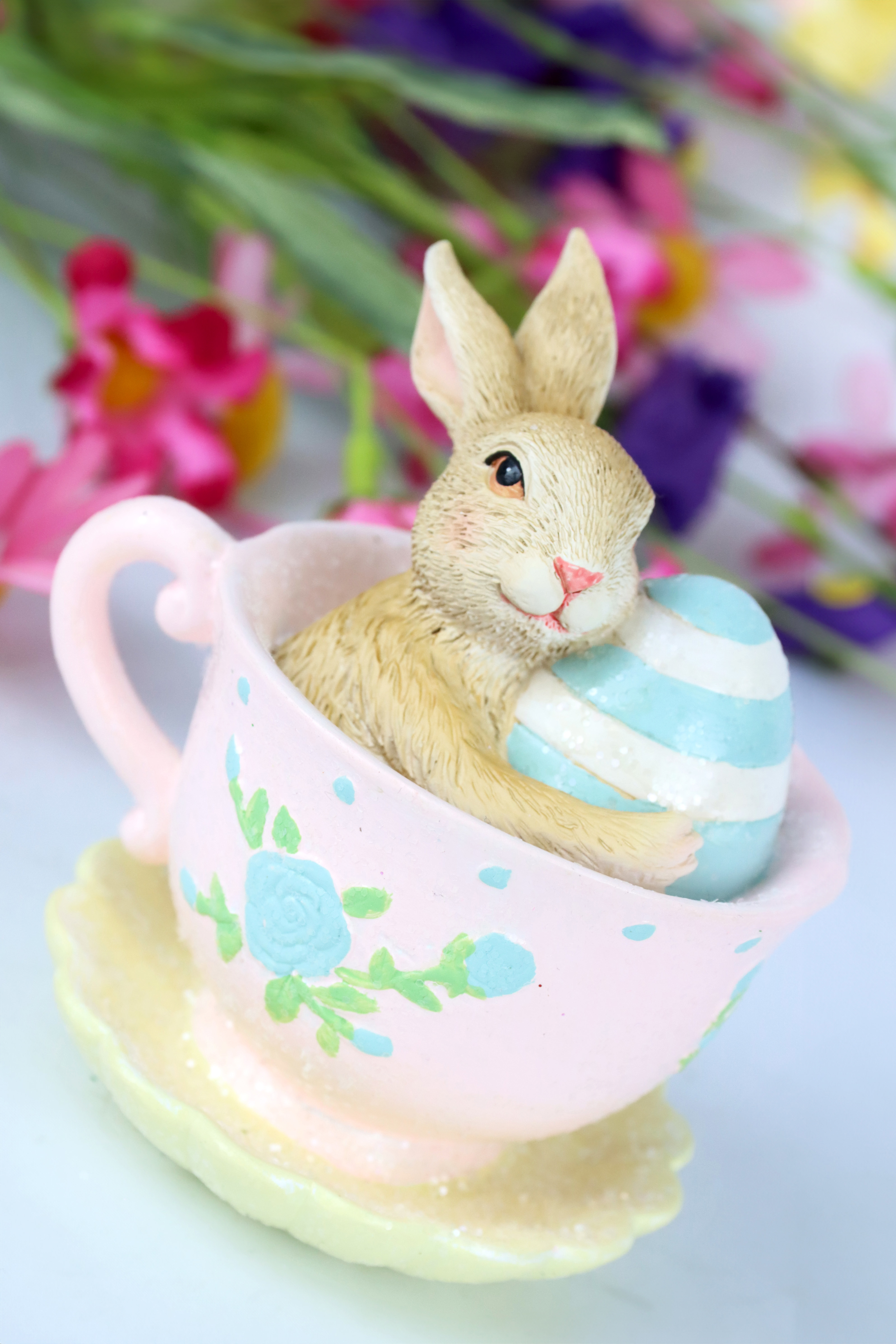 - **Trio di 3 coniglietti**: Le simpatiche figurine di coniglietti seduti nelle tazze aggiungono un tocco giocoso alla vostra collezione pasquale.