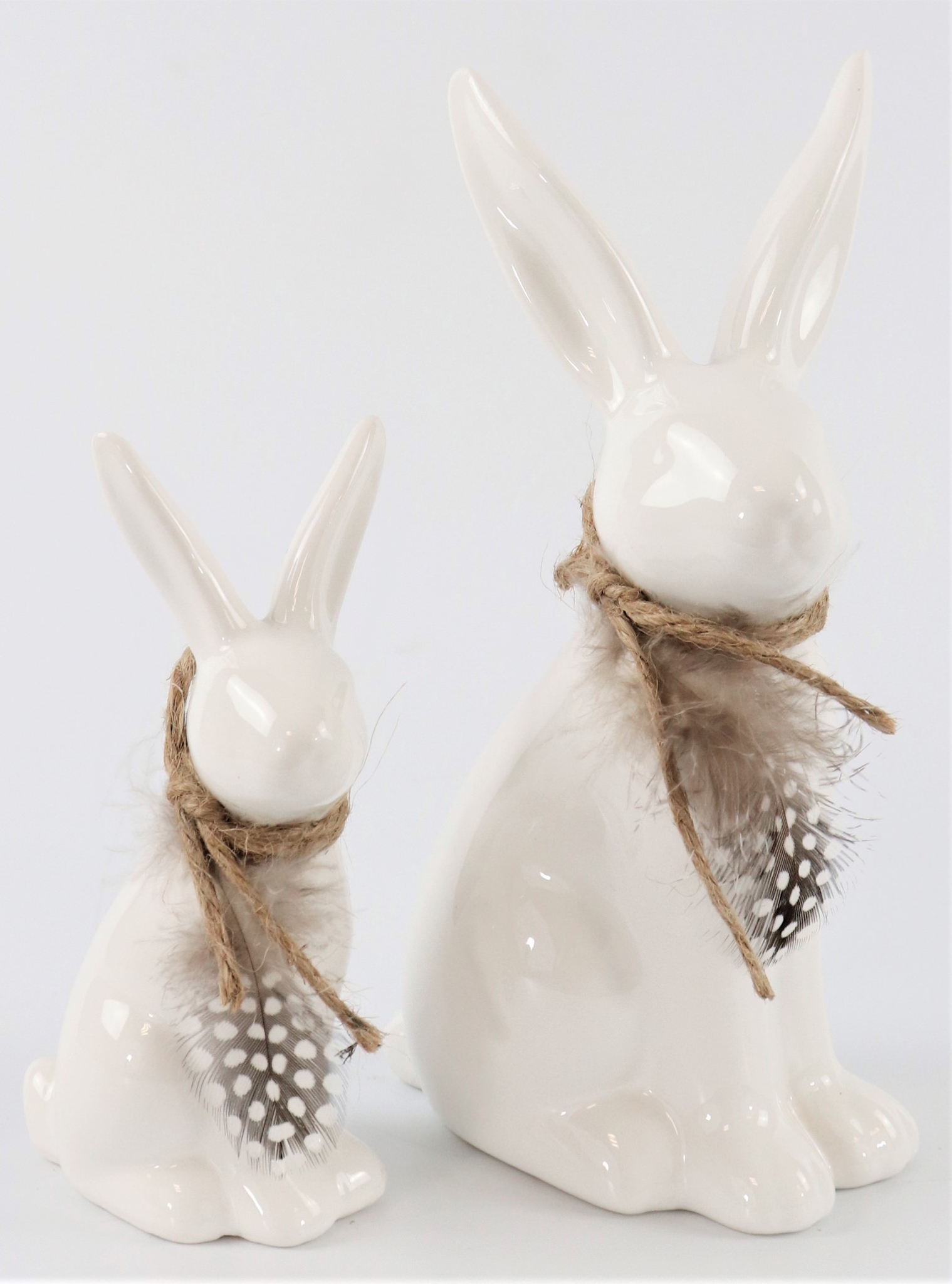 IT**Descrizione del prodotto: COPPIA DI BUNNY "FEATHERS" S/2 - Decorazione pasquale primaverile in porcellana**
