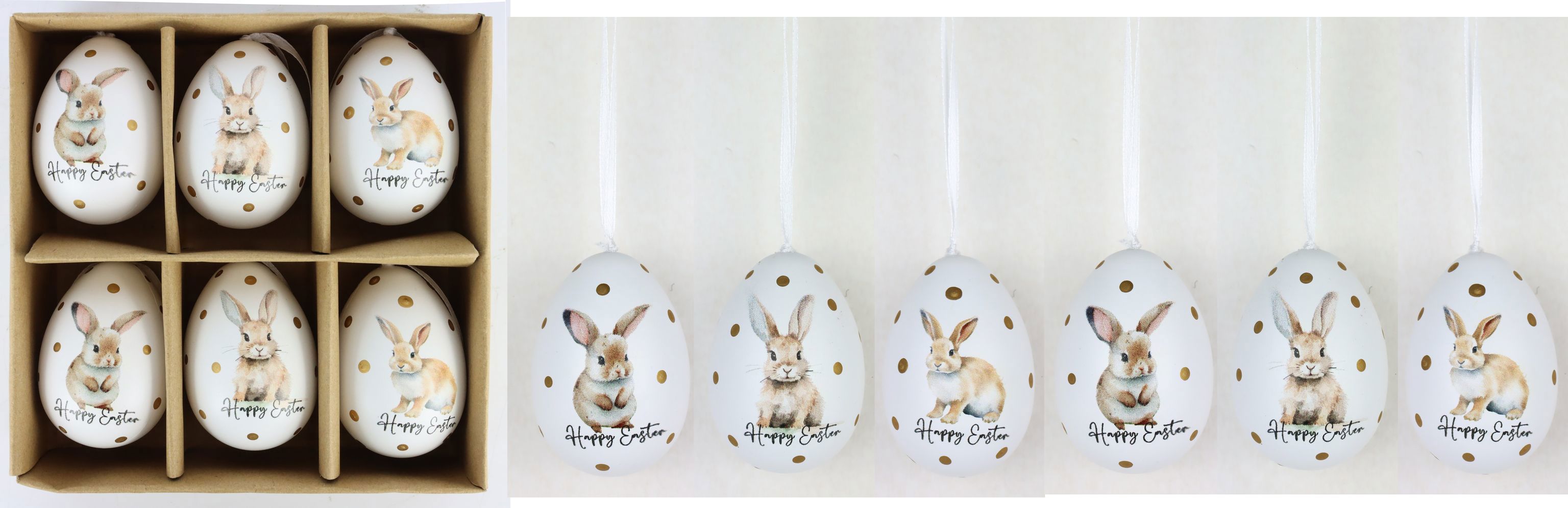Durante il periodo pasquale, non c'è niente di meglio che decorare la casa in modo festoso e creare un'atmosfera speciale. La nostra scatola di uova "HAPPY EASTER" in un set da 6 pezzi è l'elemento decorativo ideale per la vendita al dettaglio nel settore della casa e del lifestyle. Queste eleganti uova appese in plastica non sono solo un vero e proprio richiamo visivo, ma anche estremamente pratiche e resistenti.