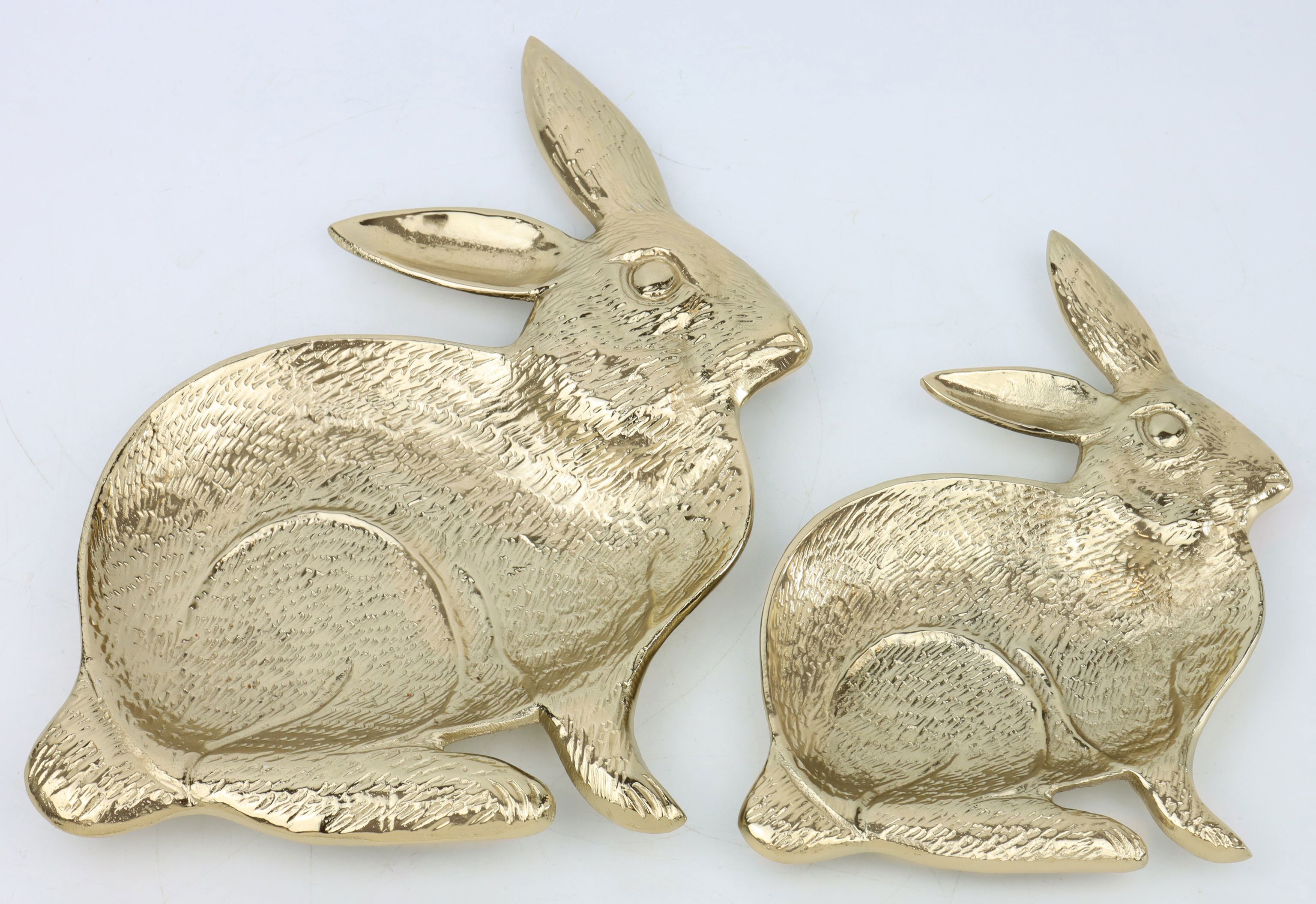 - Set di 2 piatti dorati a forma di coniglietto.