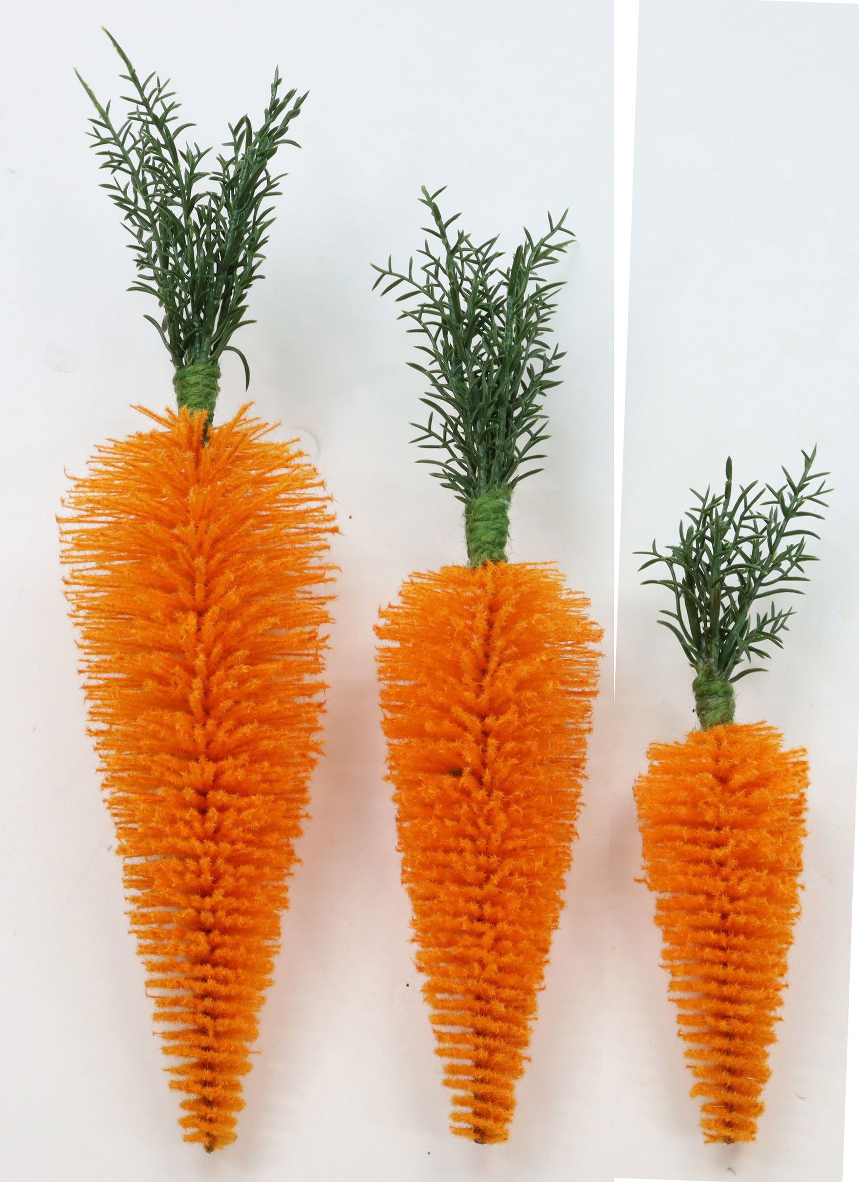 Il trio di carote è particolarmente resistente e facile da curare, il che lo rende ideale per gli ambienti di vendita al dettaglio ad alto traffico. La pulizia e la conservazione sono semplici, in modo da poter trarre vantaggio da questo investimento anno dopo anno. Inoltre, le carote sono leggere e mobili, quindi possono essere facilmente posizionate in diverse aree del negozio per creare nuovi accenti o migliorare gli espositori esistenti.