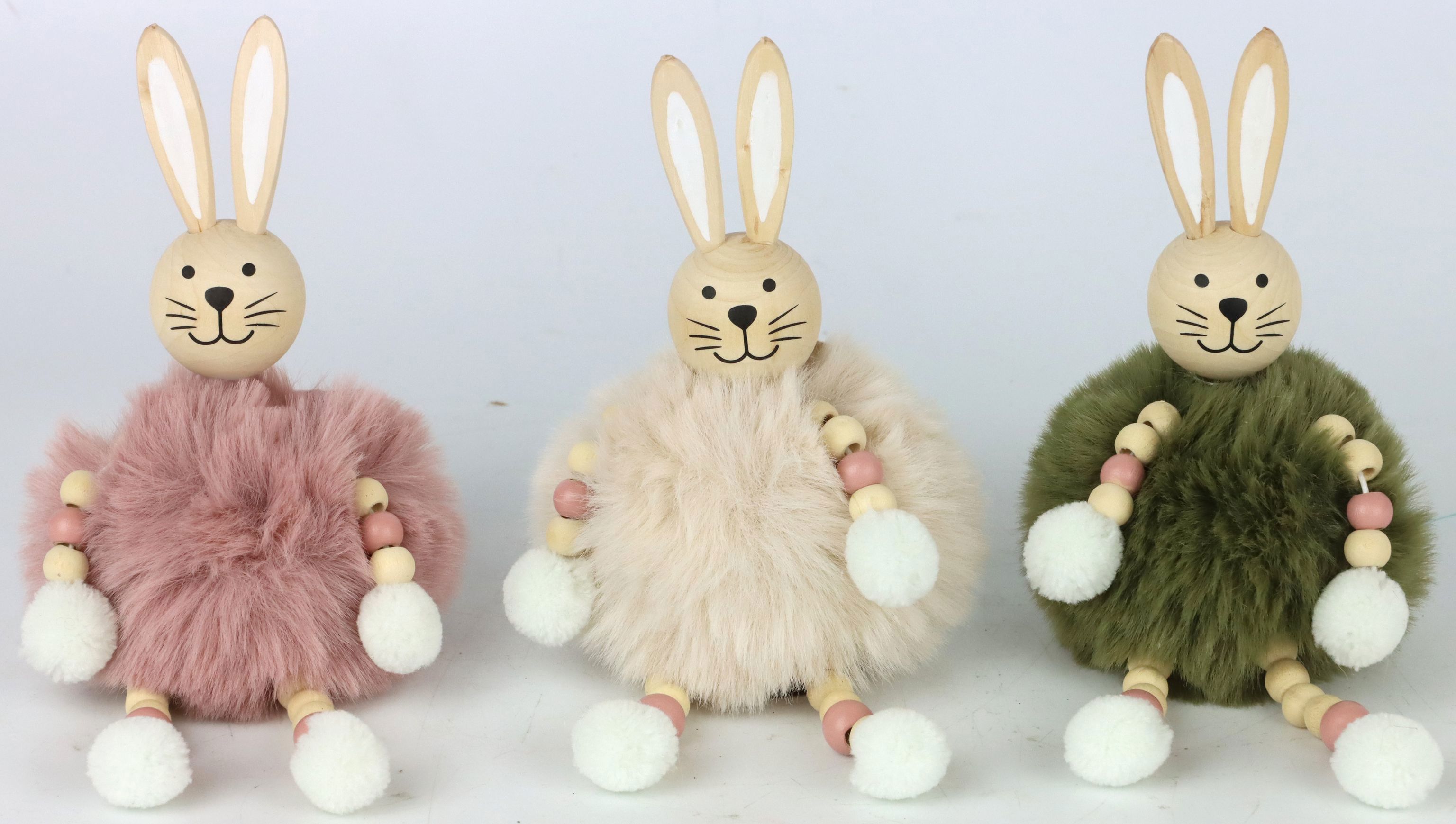 Questi simpatici coniglietti non solo portano il buonumore, ma sono anche un'elegante aggiunta alla vostra gamma di prodotti per la casa e il lifestyle. Si rivolgono a un ampio gruppo target nel settore della vendita al dettaglio e sono ideali come richiamo visivo per arricchire il mondo del tema pasquale sui vostri scaffali. Grazie all'uso di pelliccia sintetica e legno, le statuette sono durevoli e offrono ai vostri clienti una soluzione di facile manutenzione per le decorazioni stagionali. Grazie alle loro dimensioni compatte, sono anche flessibili da usare e facili da sistemare.