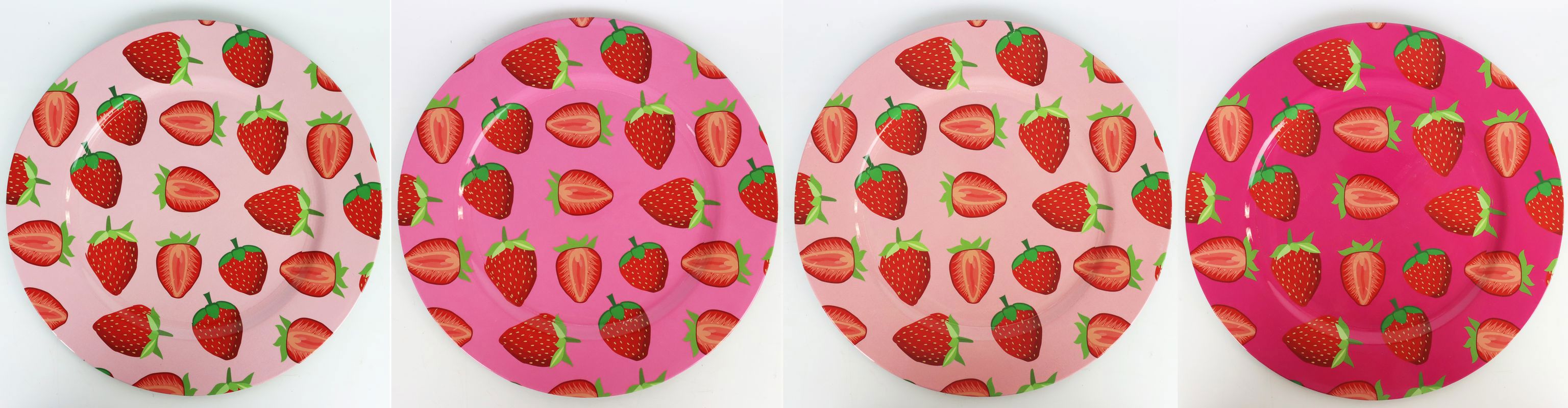 - **Setumfang:** 4 Teller mit Erdbeermotiv