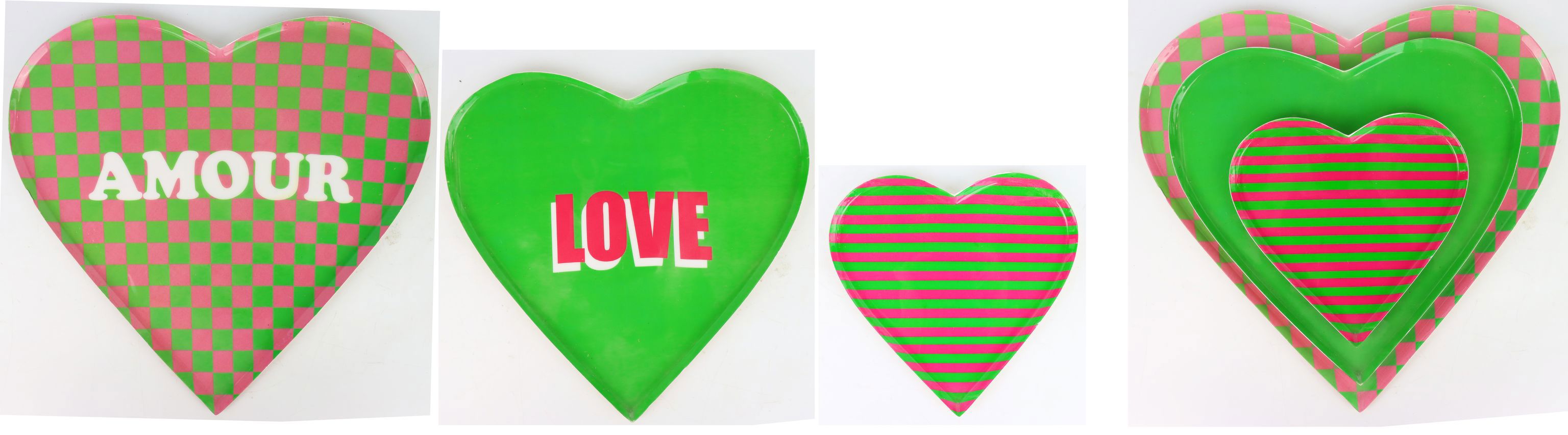 - 3-teiliges Set mit Herztabletts in den Größen 35 cm, 29 cm und 20 cm