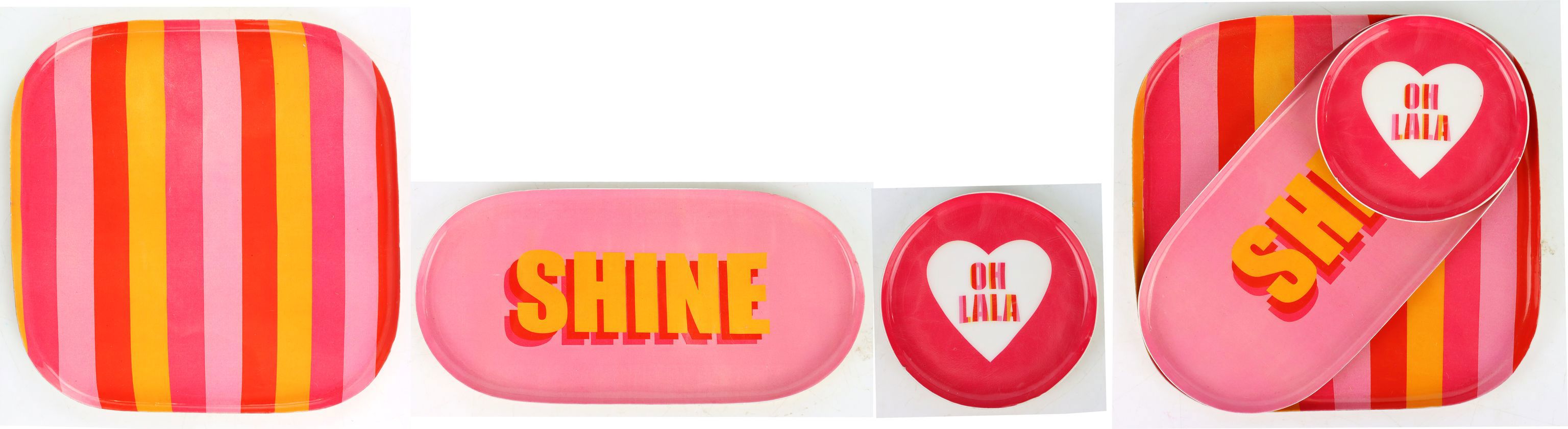 Entdecken Sie das charmante 3-teilige Set unserer TABLETTS "MESSAGE", das Ihre Frühlings- und Sommerkollektion im Einzelhandel auf ein neues Niveau hebt. Jedes Tablett in diesem Set besticht durch seine kunstvolle Gestaltung und die Verwendung von hochwertigem Metall. Die Tabletts fügen sich nahtlos in jedes Wohn- und Lifestyle-Ambiente ein und bieten eine Vielzahl von Verwendungsmöglichkeiten, die Ihre Kunden begeistern werden.