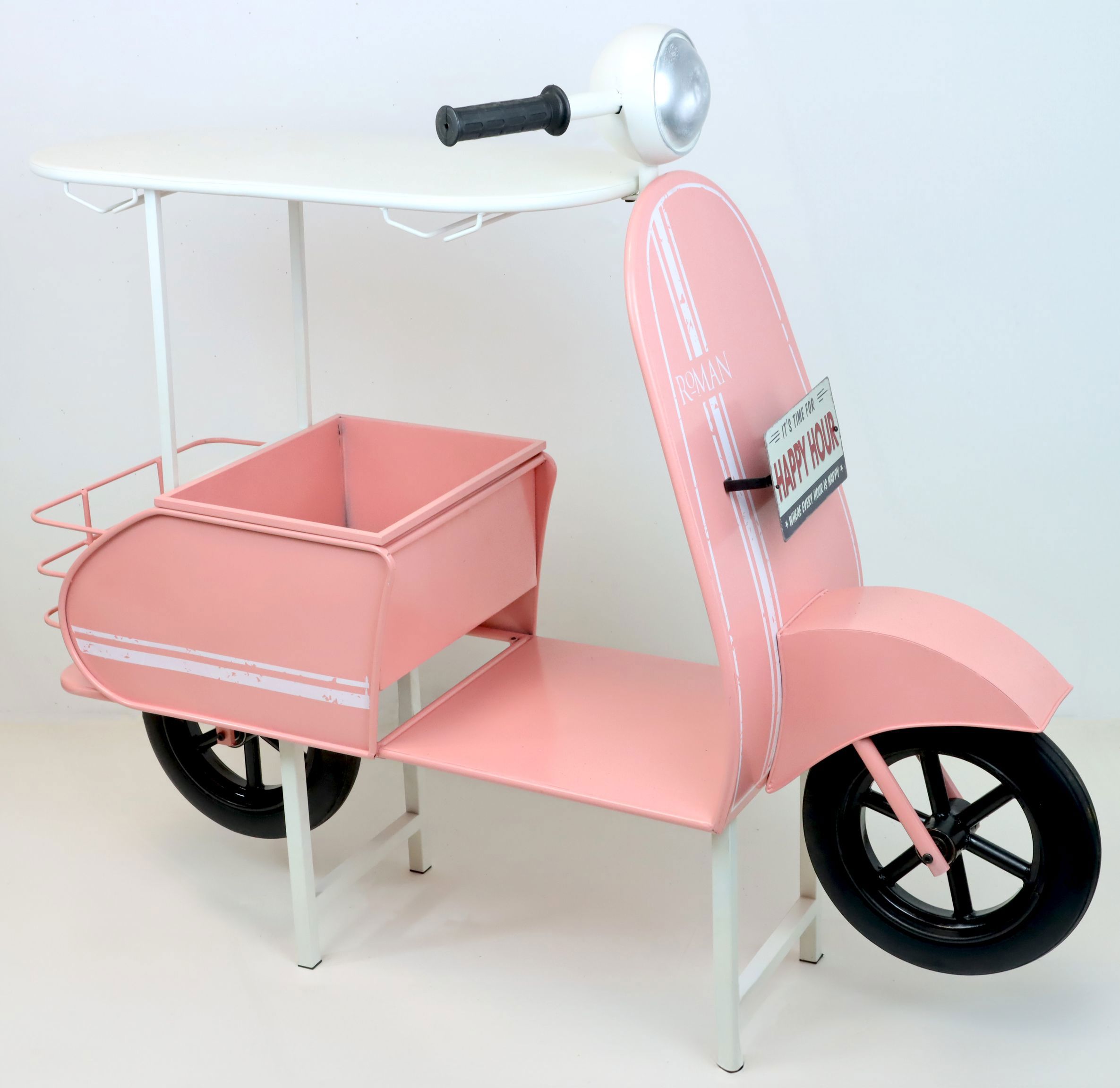 Erleben Sie mit der ROLLERBAR "HAPPY HOUR" die perfekte Symbiose aus Funktionalität und Design. Diese trendige Bar auf Rädern ist der ideale Begleiter für jede Frühjahrs- und Sommerveranstaltung. Mit einer stattlichen Höhe von ca. 121 cm bietet die Rollerbar nicht nur ausreichend Platz für Ihre Getränke und Snacks, sondern wird auch zum stilvollen Mittelpunkt jedes Gartens oder Terrassenbereichs. Gefertigt aus robustem Eisen und Kunstoff, verkörpert sie sowohl Stabilität als auch Eleganz. Der sanfte Rosaton wertet jeden Innen- und Außenbereich ästhetisch auf und unterstreicht das durchdachte Design dieser stilvollen mobilen Bar.