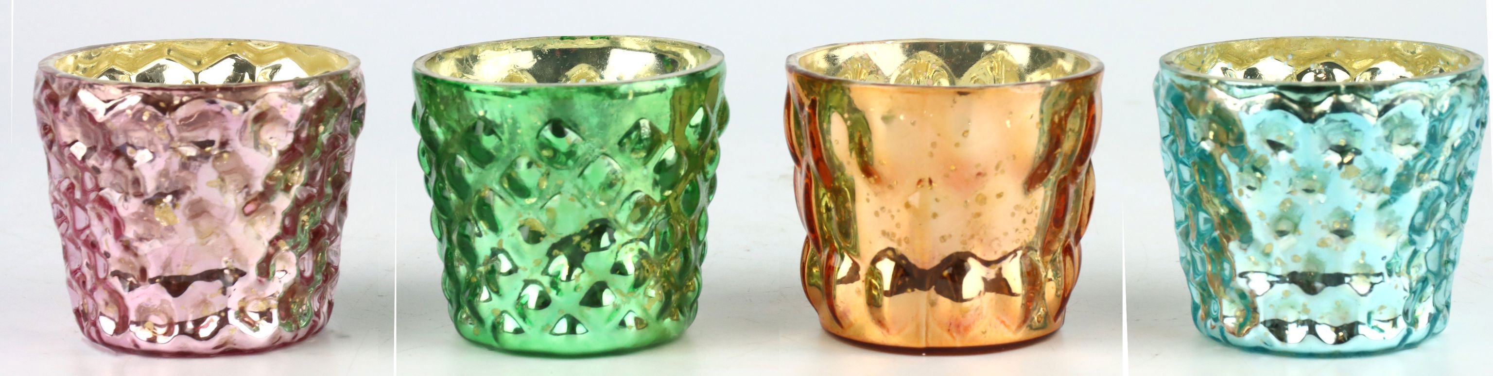 - Set bestehend aus vier Windlichtern in den Farben Pastel Rosa, Grün, Blau und Orange