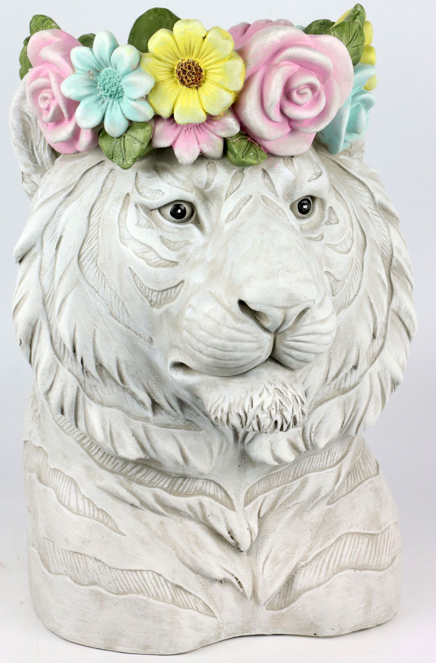 Das Material Polyresin ist besonders pflegeleicht, wodurch der "Hippie Tiger" nicht nur im Innenbereich, sondern auch in geschützten Außenbereichen eine hervorragende Figur macht. Seine Beständigkeit gegen Witterungseinflüsse und die detailgetreue Gestaltung machen ihn zu einem unverzichtbaren Dekorationselement für den Frühling und Sommer. Die leuchtenden Farben und das kunstvolle Design ziehen alle Blicke auf sich und verbinden Ästhetik mit Funktionalität.