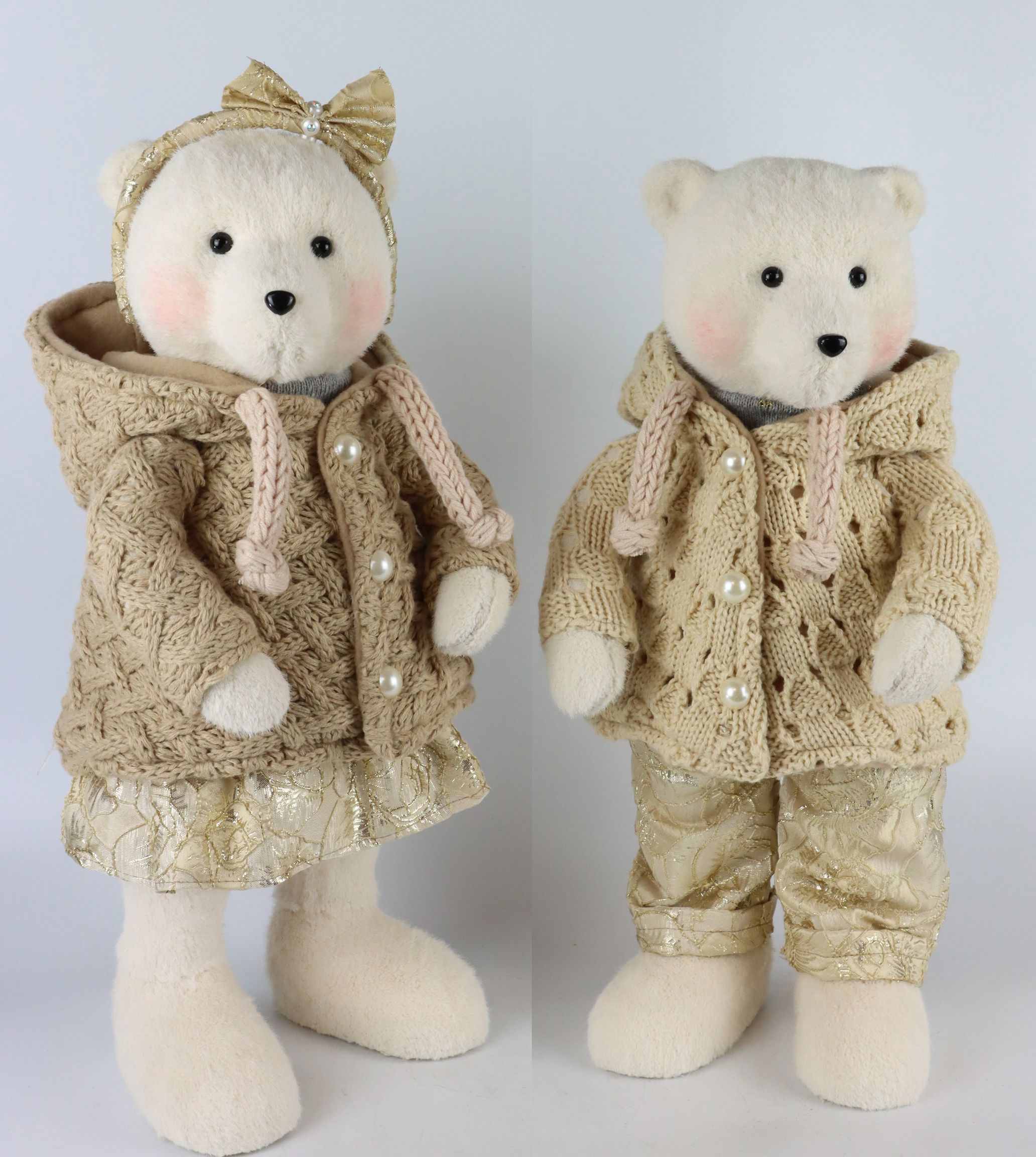 - Set bestehend aus zwei Bären in braunen Strickpullovern
