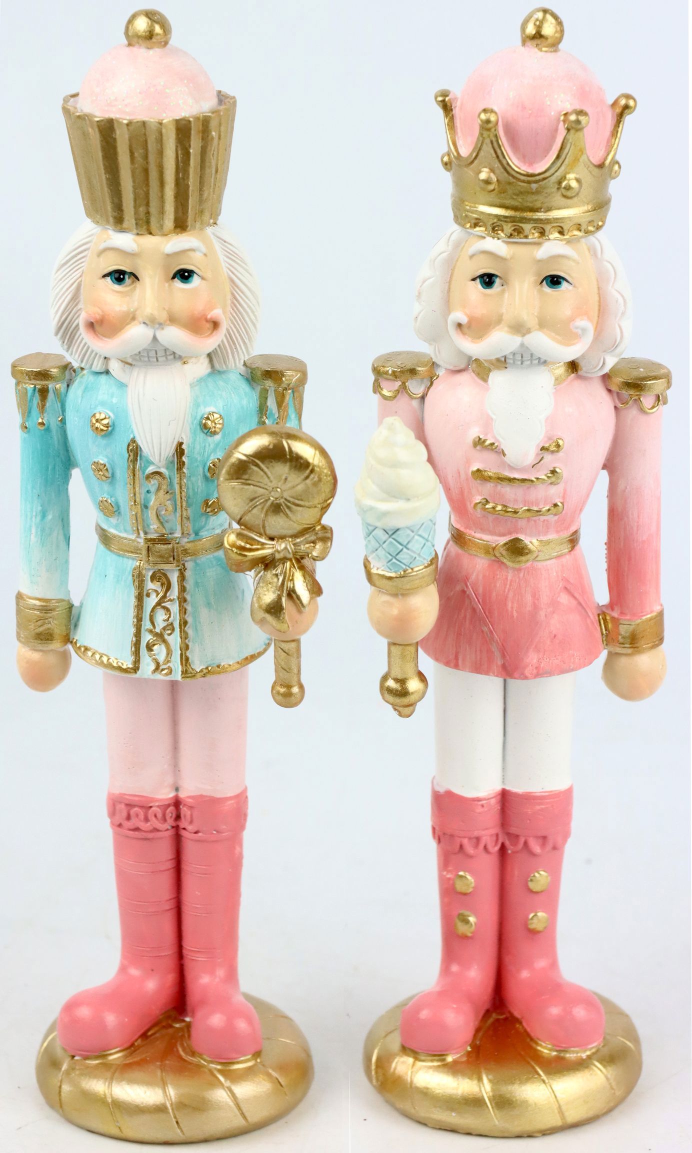 Jede 17,5 cm hohe Figur dieses Nussknacker-Sets ist aus hochwertigem Polyresin geformt, einem äußerst stabilen und langlebigen Material. Damit sind diese Dekorationsartikel nicht nur ästhetisch ansprechend, sondern auch beständig und robust, was ihren Einsatz Jahr für Jahr ermöglicht.
