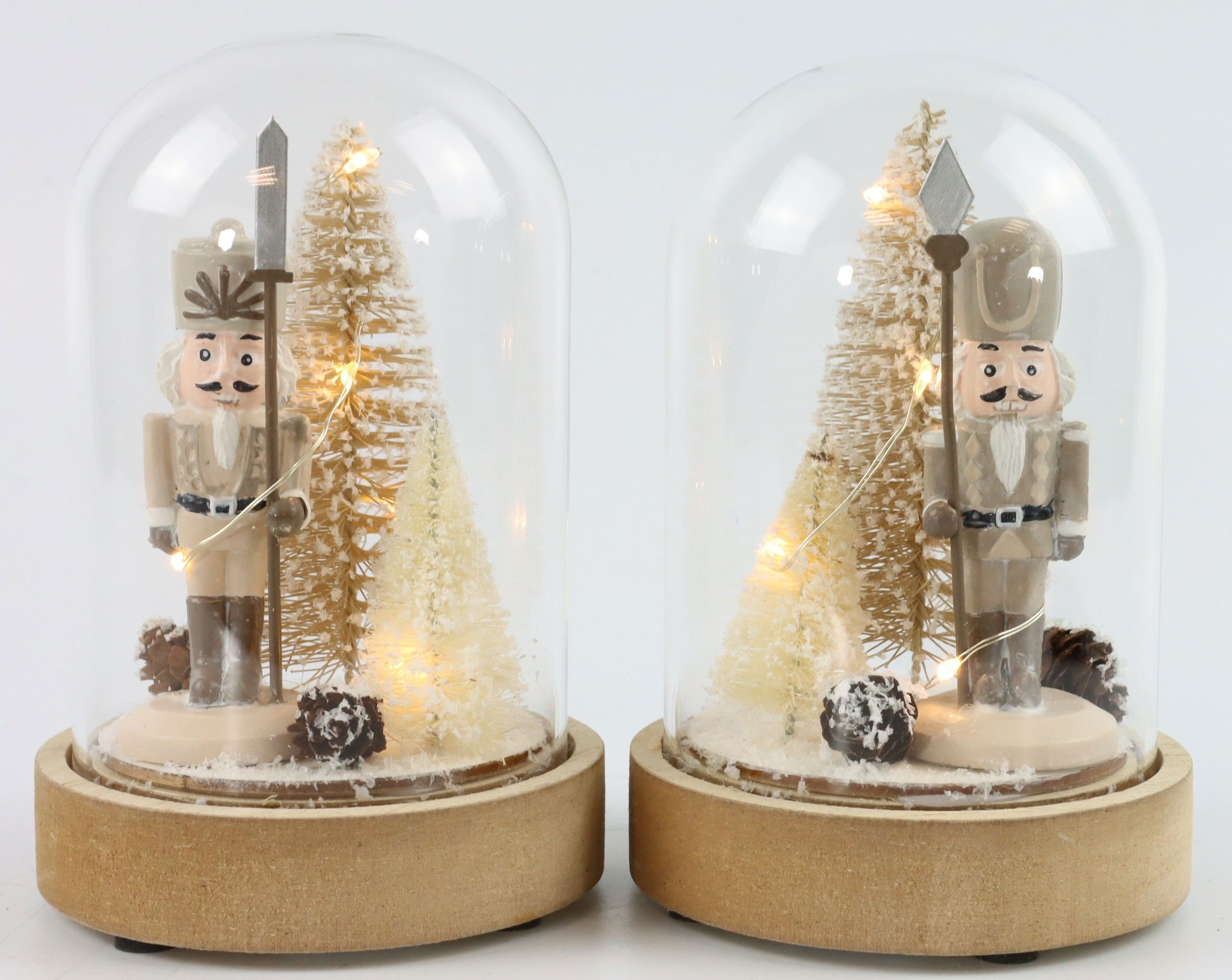 Die Glocken strahlen dank der modernen LED-Technologie ein warmes und einladendes Licht aus. Sie sind batteriebetrieben und können daher flexibel zur Gestaltung der Schaufenster, Regale und Verkaufsstellen eingesetzt werden. Die schimmernden LED-Lichter bringen den nostalgischen Nussknacker aus Holz und Glas, mit einer Höhe von etwa 14 cm, zum Leuchten.
