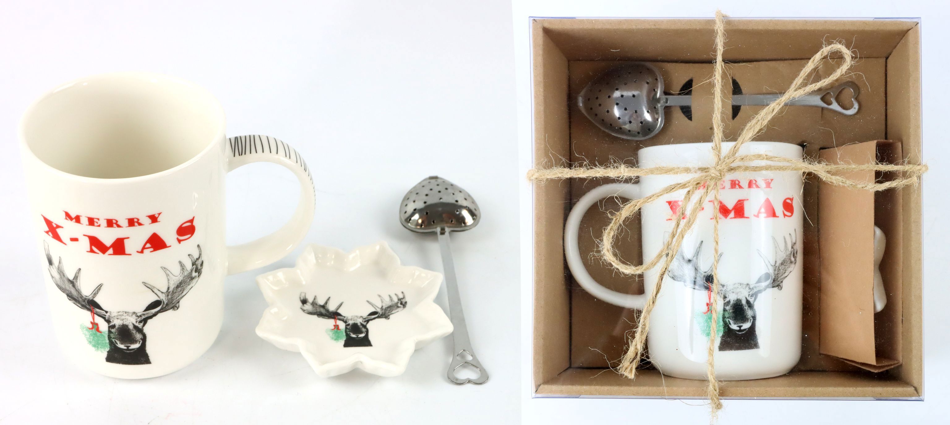 Das Geschenkeset "Funny Moose" besteht aus einer charmanten Tasse, einem dekorativen Sternenteller und einem einzigartigen Teesieb aus hochwertigem Porzellan. Diese liebevoll gestalteten und aufeinander abgestimmten Komponenten zeichnen sich durch ihr lustiges Elch-Design aus, das sich harmonisch in jede weihnachtliche Dekoration einfügt. Die Tasse und der Sternenteller sind ideal für gemütliche Frühstücksmomente oder den nachmittäglichen Tee, während das praktische Teesieb das Teeerlebnis stilvoll ergänzt. Mit einer Höhe von ca. 11,5 cm sind alle Teile in einer ansprechenden Geschenkbox verpackt, die das Set zu einer perfekten Schenkoption machen.