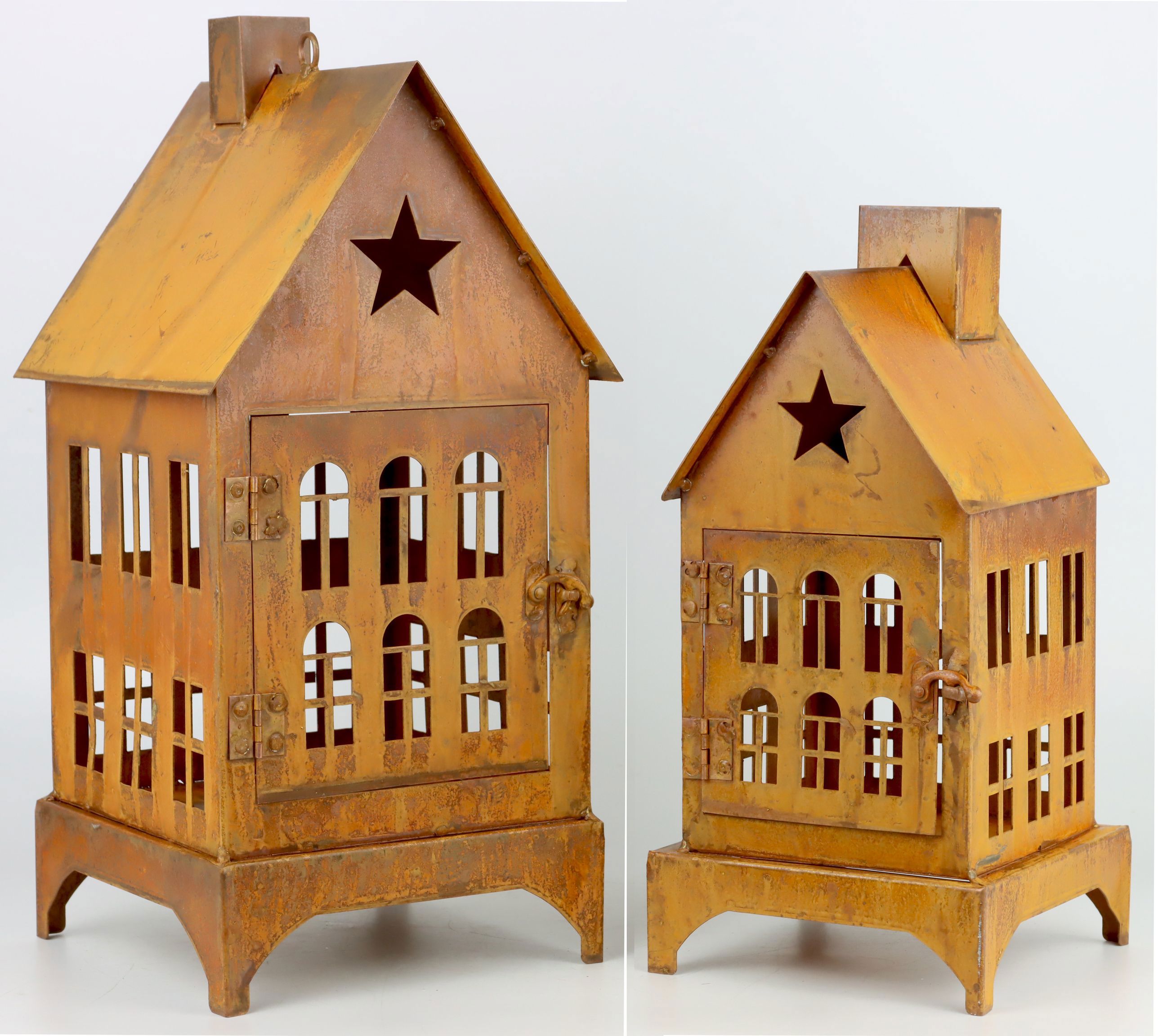 DEEintauchen in die warme, behagliche Atmosphäre der "LA VILLE" Laternenhäuser, Artikelnummer 7283, in der Saison Herbst/Winter. Dieses zweiteilige Set aus rostfarbenem Eisen, mit einer Größe von etwa 63 cm, bringt ein einzigartiges, wohnliches Flair in jeden Raum. Perfekt für den stationären Einzelhandel im Bereich Wohnen und Lifestyle, die stets nach spannenden neuen Produkten suchen, um ihren Kunden das Beste zu bieten.