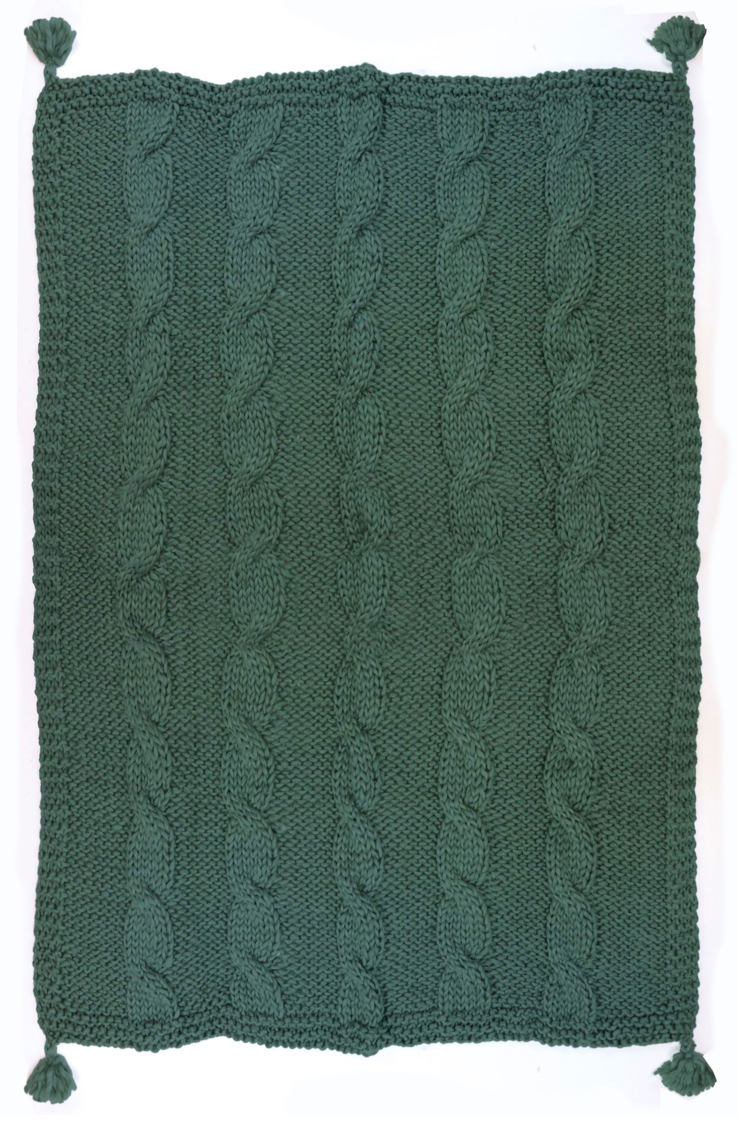 Die Strickdecke "Gstaad" eignet sich hervorragend als dekoratives Accessoire im Wohn- und Schlafbereich, in Ihrem Lieblingslehnstuhl oder auf der Couch. Hüllen Sie sich in kühlen Abenden in diese anschmiegsame Kuscheldecke und genießen Sie unvergesslich gemütliche Stunden. Das dunkle Grün passt dabei perfekt in verschiedenste Einrichtungsstile und sorgt für einen harmonischen Akzent in jeder Wohnsituation.