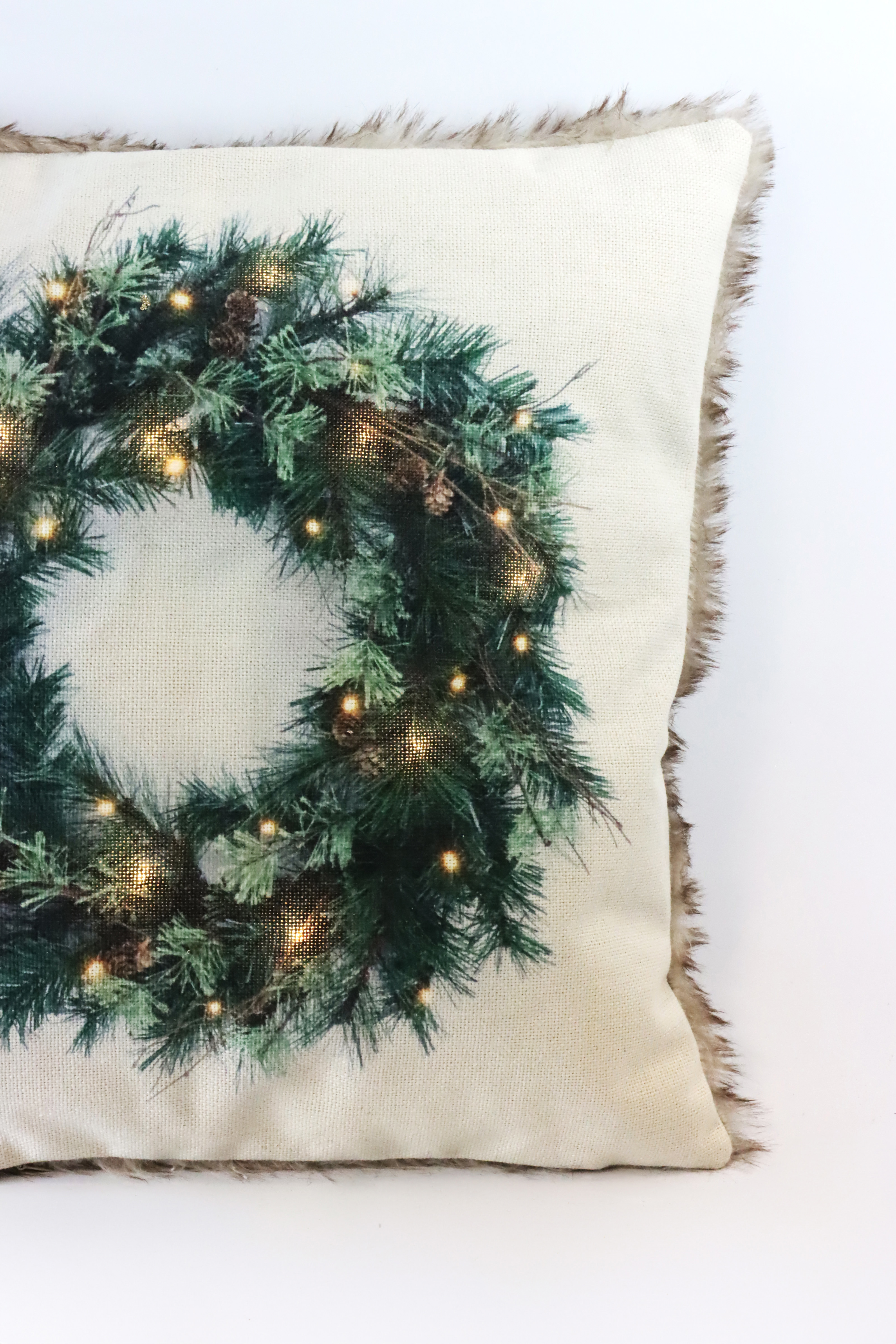 Schlüsselwörter: LED Kranz, Kissenhülle, Weihnachtsdekor, festliche Wohnaccessoires, Geschenkideen, wohnen und Lifestyle, Polyester Kissenhülle, Faux Fur, batteriebetriebene Beleuchtung, weihnachtlicher Lifestyle.
