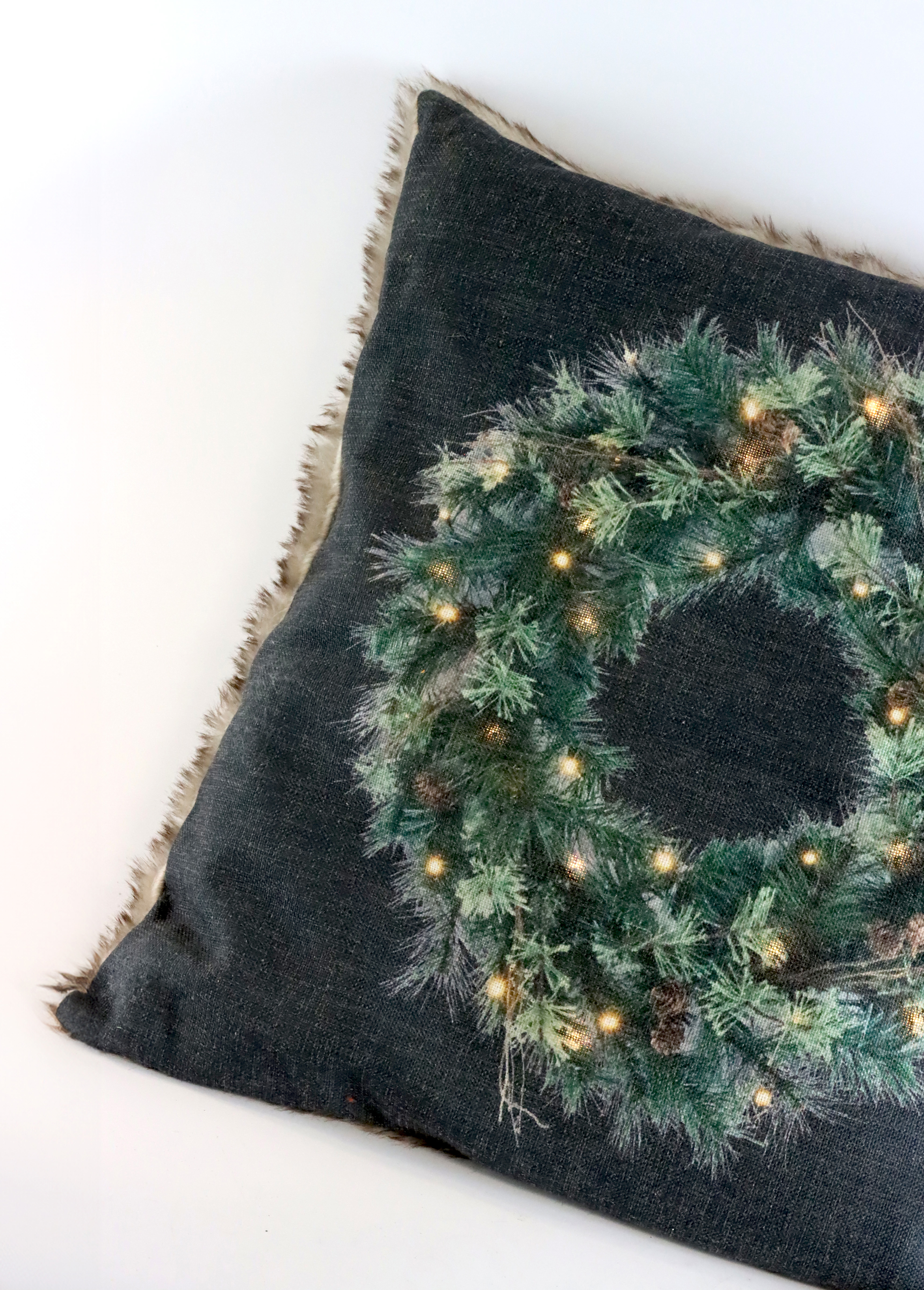 Keywords: Kissenhülle, Weihnachtsdeko, LED Kranz, batteriebetrieben, Wohnaccessoires, lifestyle, festliche Wohnatmosphäre.
