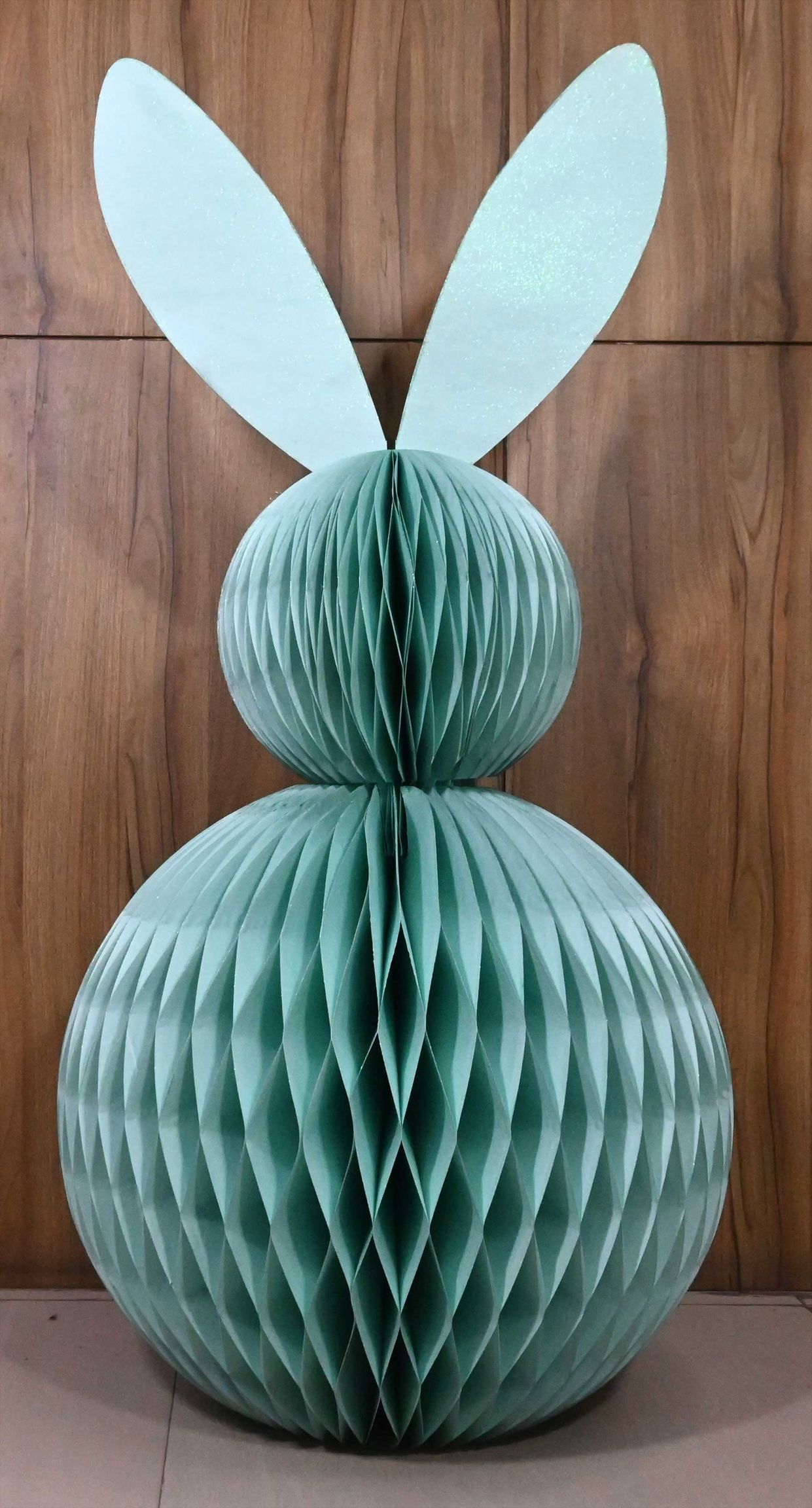 DE**Produktbeschreibung: DEKOHASE "HONEYCOMB" 80cm aus Papier in Blau für Ostern**