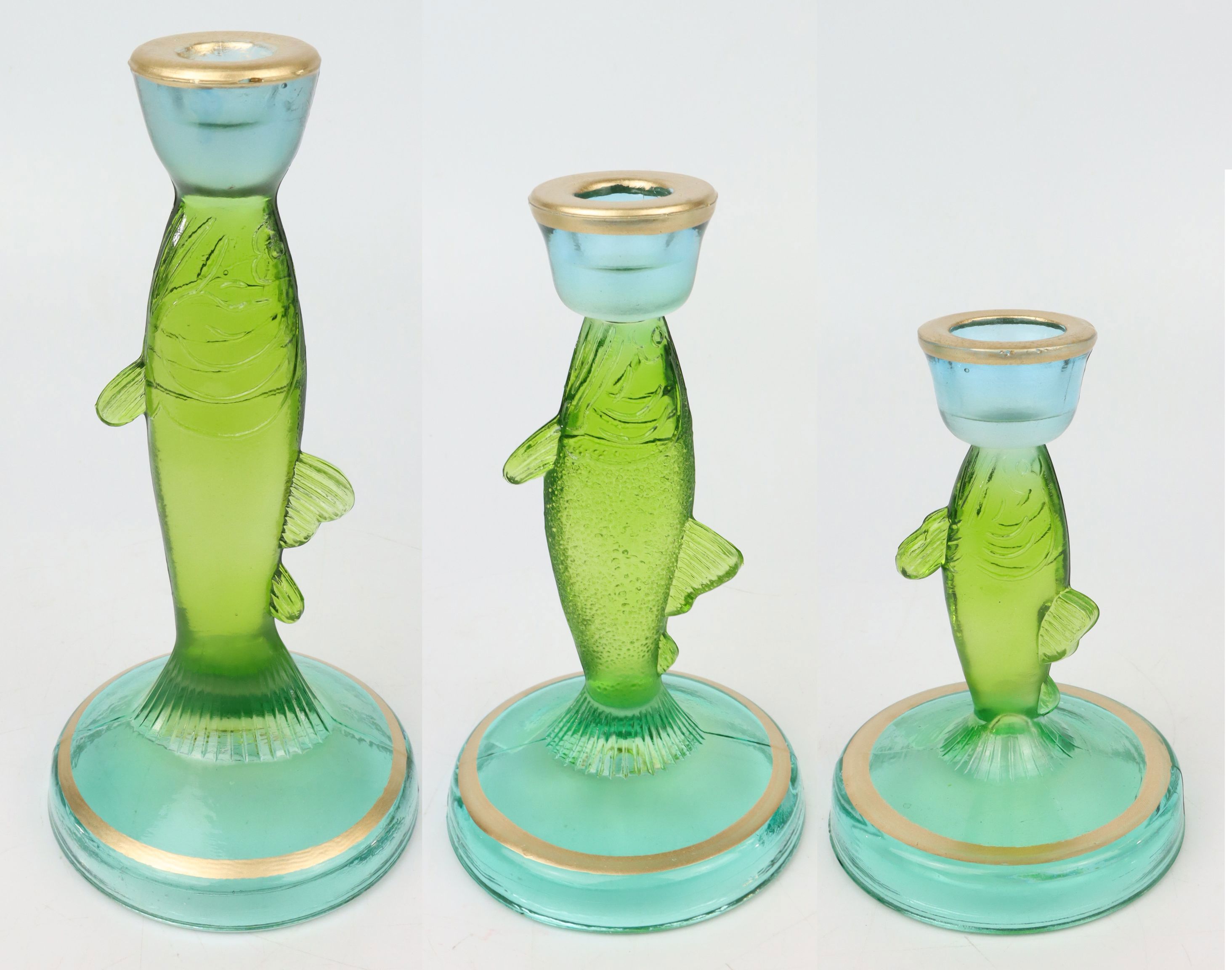Die kunstvoll gestalteten Leuchter in Form von Fischen fügen sich nahtlos in jede Wohnumgebung ein und setzen natürliche Akzente, die sowohl modern als auch zeitlos sind. Die erfrischende grüne Farbnuance des Glases sorgt für ein helles und freundliches Ambiente – ideal für den Frühlings- und Sommerverkauf. Ihre Kunden werden den einzigartigen Charme dieser Dekorationsstücke zu schätzen wissen, die sowohl als Tischdekoration als auch als fensterseitige Hingucker vielseitig einsetzbar sind.