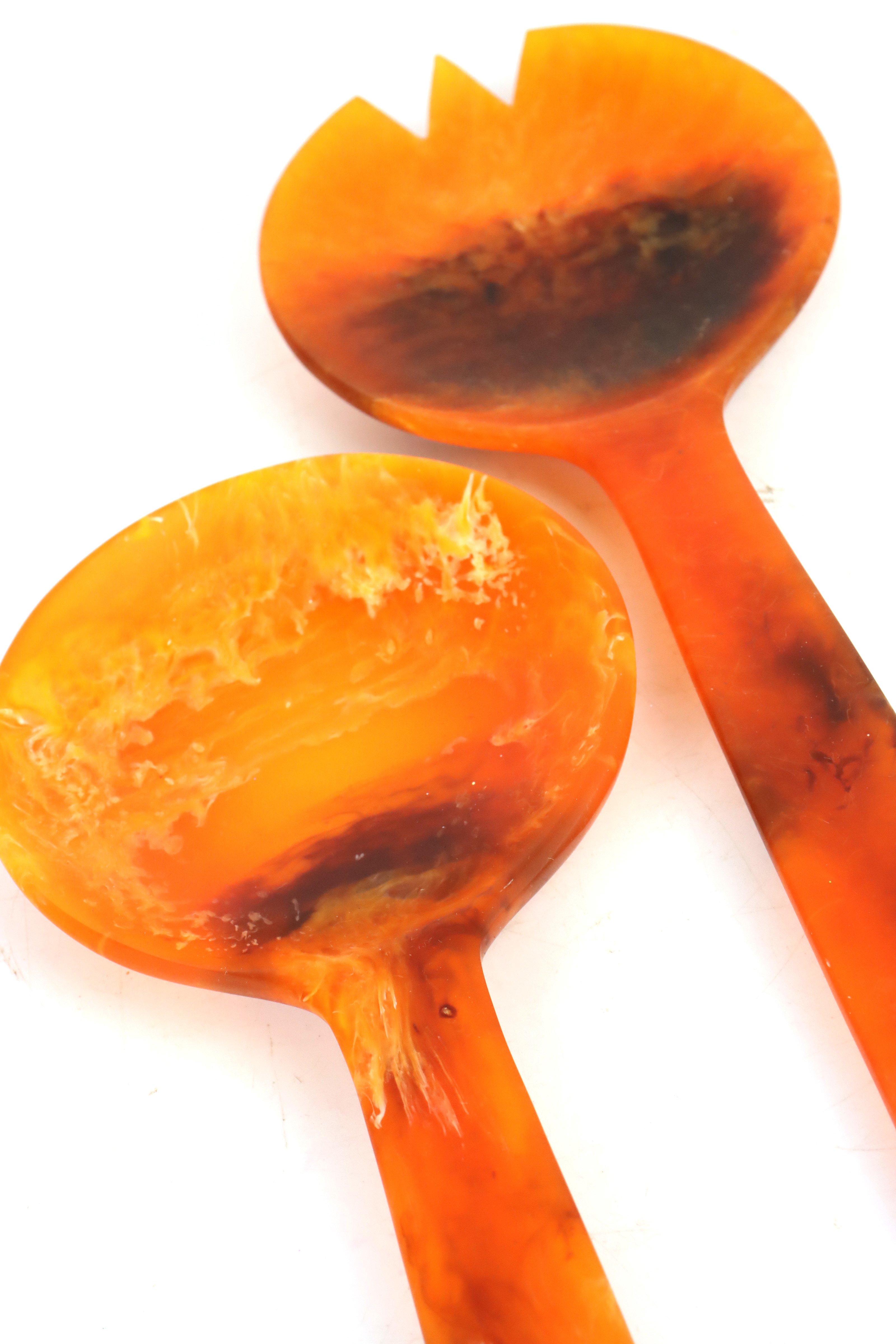 The exclusive "Alabaster" salad servers in chic orange are the ideal addition to any stylish table setting in spring and summer. This 2-piece set not only impresses with its attractive design, but also with its outstanding functionality. Measuring approximately 32 cm in length, the cutlery pieces are perfectly proportioned to fit into both large and smaller salad bowls. Made from high-quality resin, this cutlery set offers outstanding durability and remarkable resistance to everyday wear and tear.