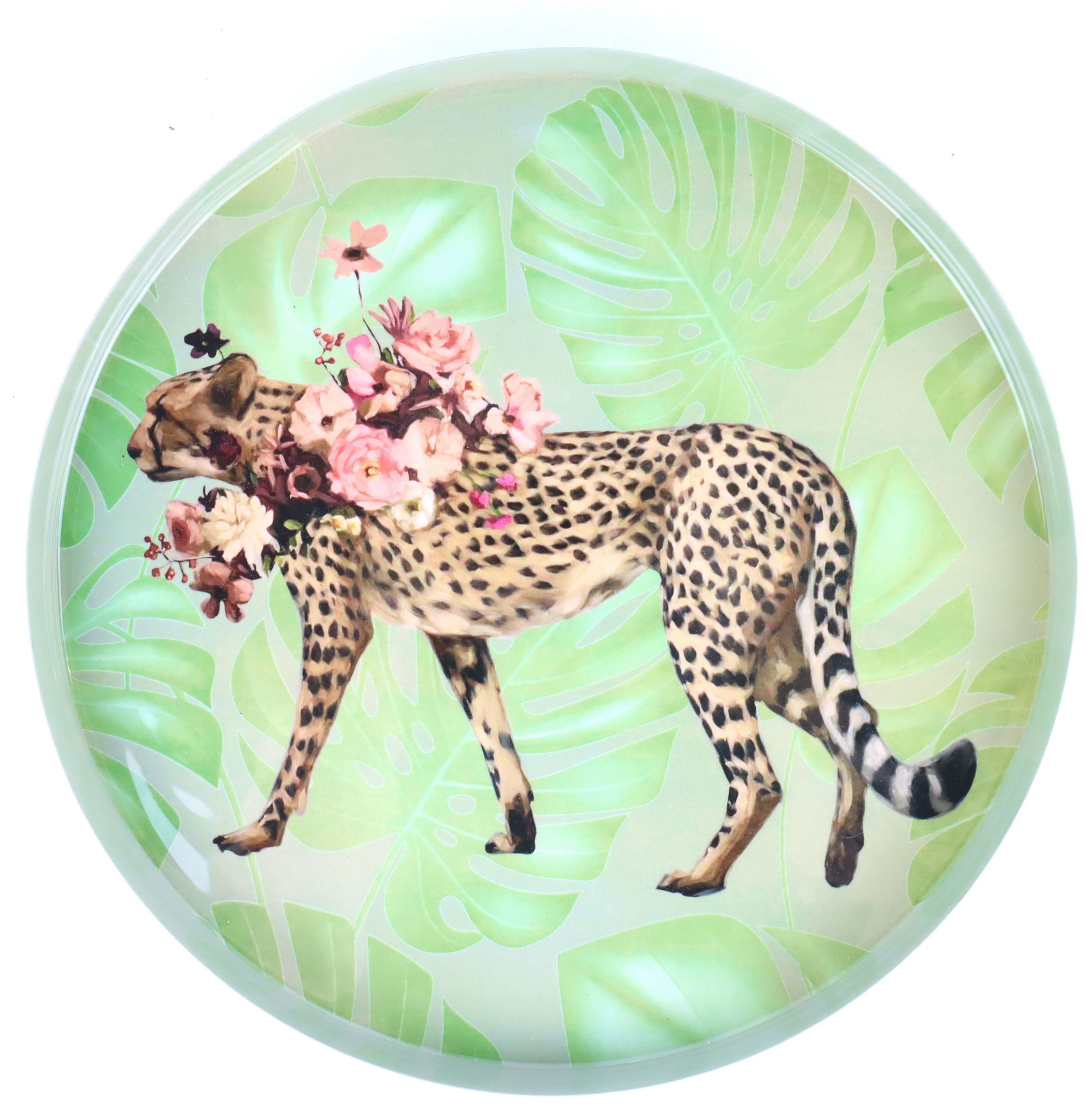 The leopard motif, combined with an artfully designed floral necklace, gives the tray an elegant yet wild touch. Perfect for setting accents in the showroom or presenting products in style. The design appeals to customers who value aesthetic details and want to integrate a piece of nature into their living spaces.