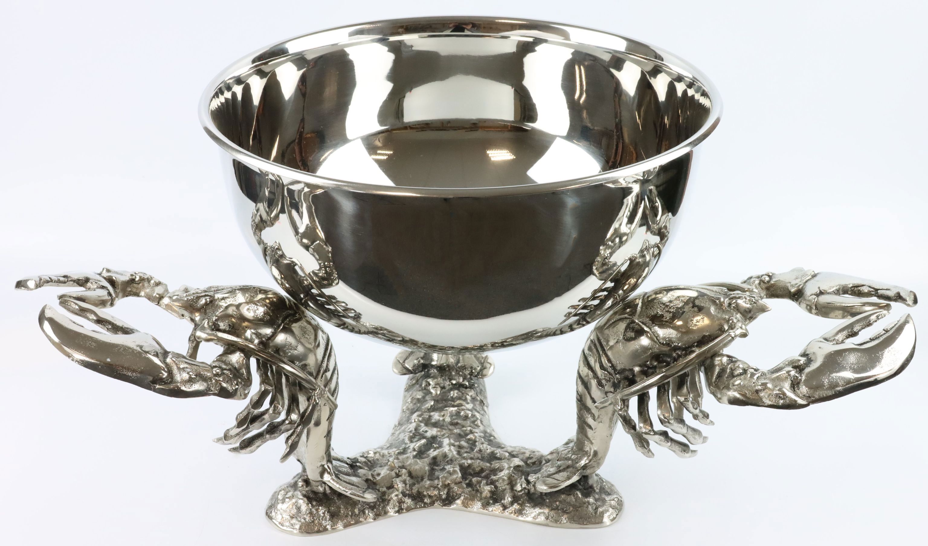 The "Lobster" goblet bowl impresses with its detailed depiction of a lobster, which rises elegantly above the edge of the bowl. Made from high-quality metal and finished with a shiny silver coating, it not only promises a sophisticated look, but also a long service life. The first-class workmanship ensures that the bowl is robust yet exquisite, an absolute must-have for every living and lifestyle department.