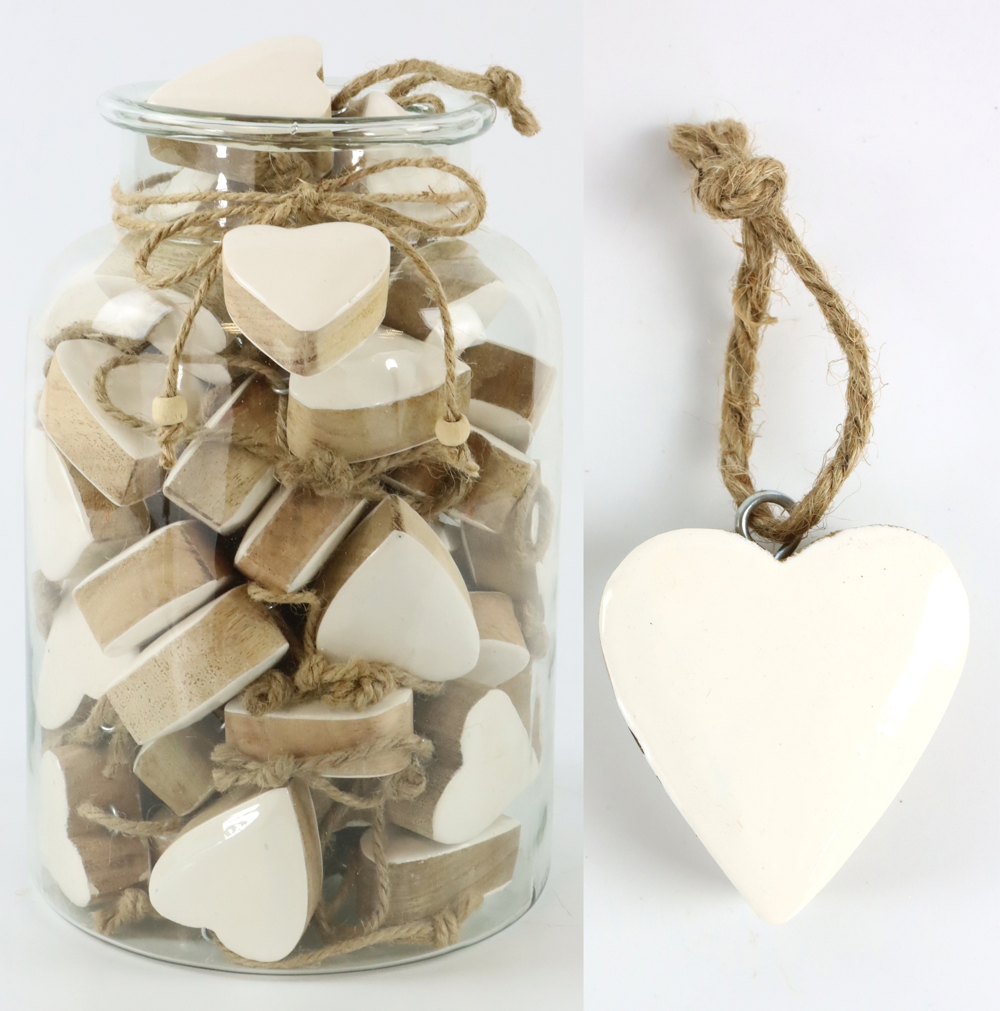 Enchant your customers and create an incomparable atmosphere in your shop with our exclusive 61-piece set "Glass with heart pendants 'White'". This splendid set is specially designed for the discerning stationary retail trade in the home and lifestyle sector and is perfect as decoration for the spring and summer months.