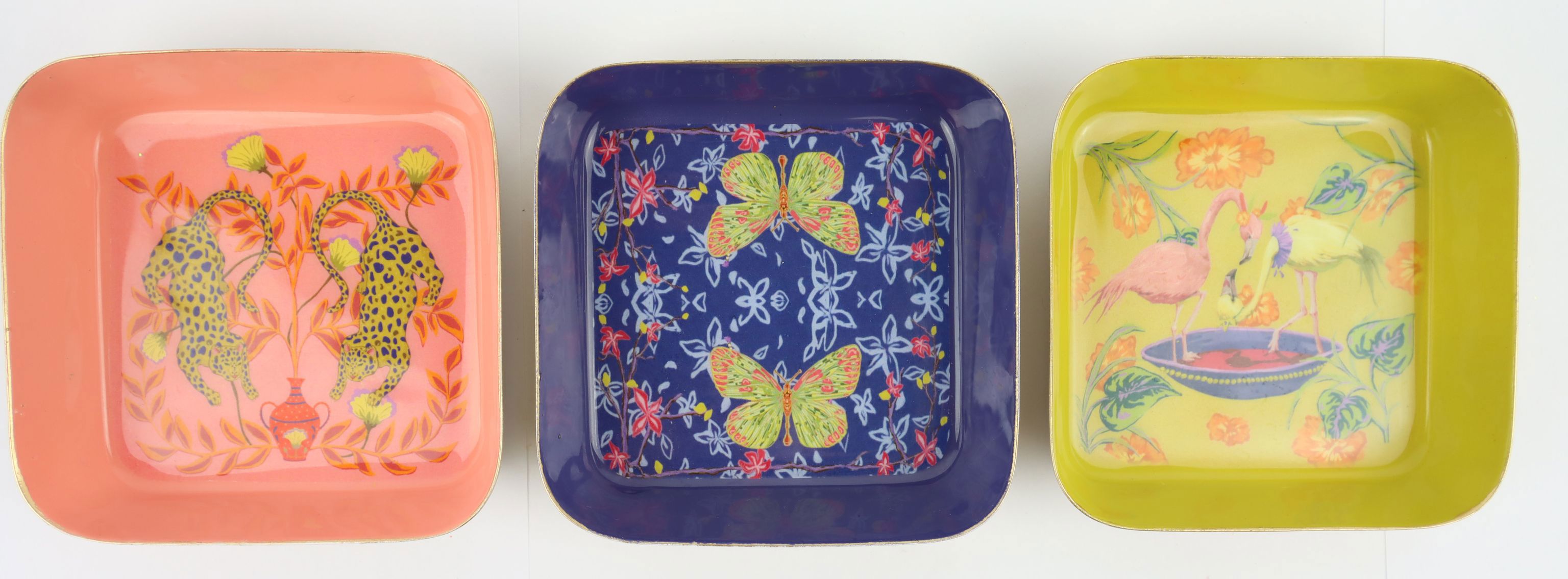 Discover the diversity and beauty of Asian fauna with our exclusive "Asian Fauna" plate set. This set, consisting of three artfully designed plates in the appealing colours coral, blue and yellow, is an ideal accessory for modern retail in the home and lifestyle sector. Made from high-quality metal, each of the plates measures approx. 9.5 cm and combines aesthetics with functionality.