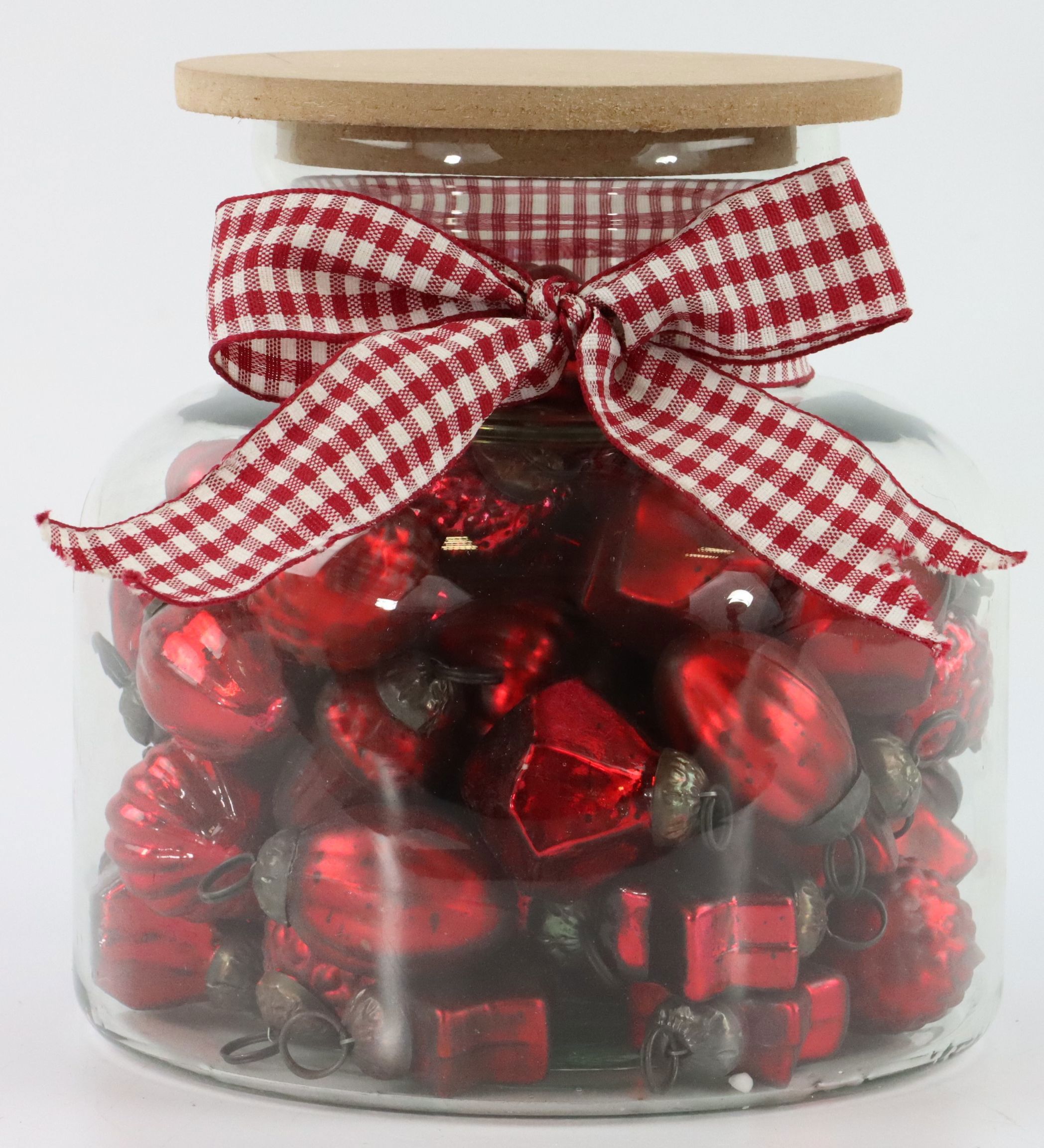 The stunning Christmas baubles will make any Christmas tree the centre of attention. With a diameter of approximately 5 cm, they create a harmonious look. The red baubles are stored in an elegant glass jar measuring approximately 17 cm in height, which also provides an attractive decorative option. Made from high-quality glass and robust wood, the baubles shine in an intense, shiny red colour, giving your Christmas tree a festive and stylish look.