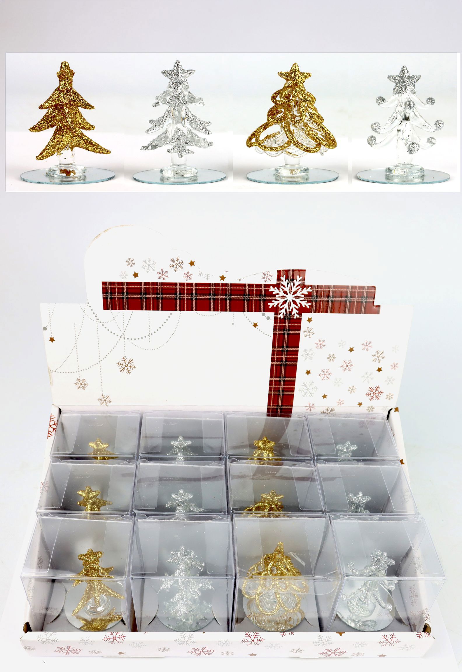 - 12-piece display box with Christmas trees