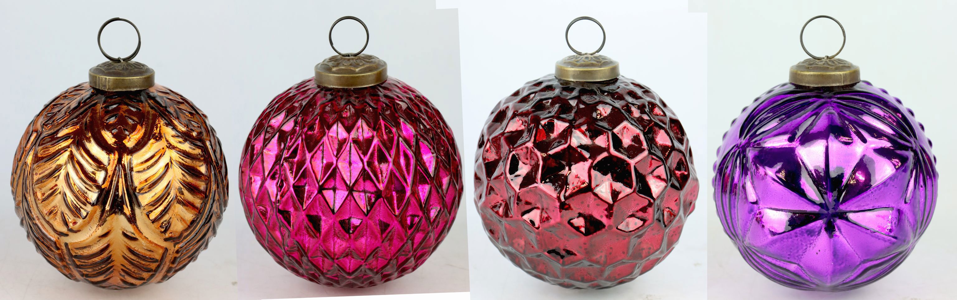 ENIn our B2B online shop, specialising in stationary retail in the home and lifestyle sector, we are proud to present the product "Glass baubles Carnival", (item number: 8207). This Christmas decoration, consisting of a 4-piece set of glass baubles, each with a diameter of 10 cm, is an absolute must-have for the upcoming Christmas sales.