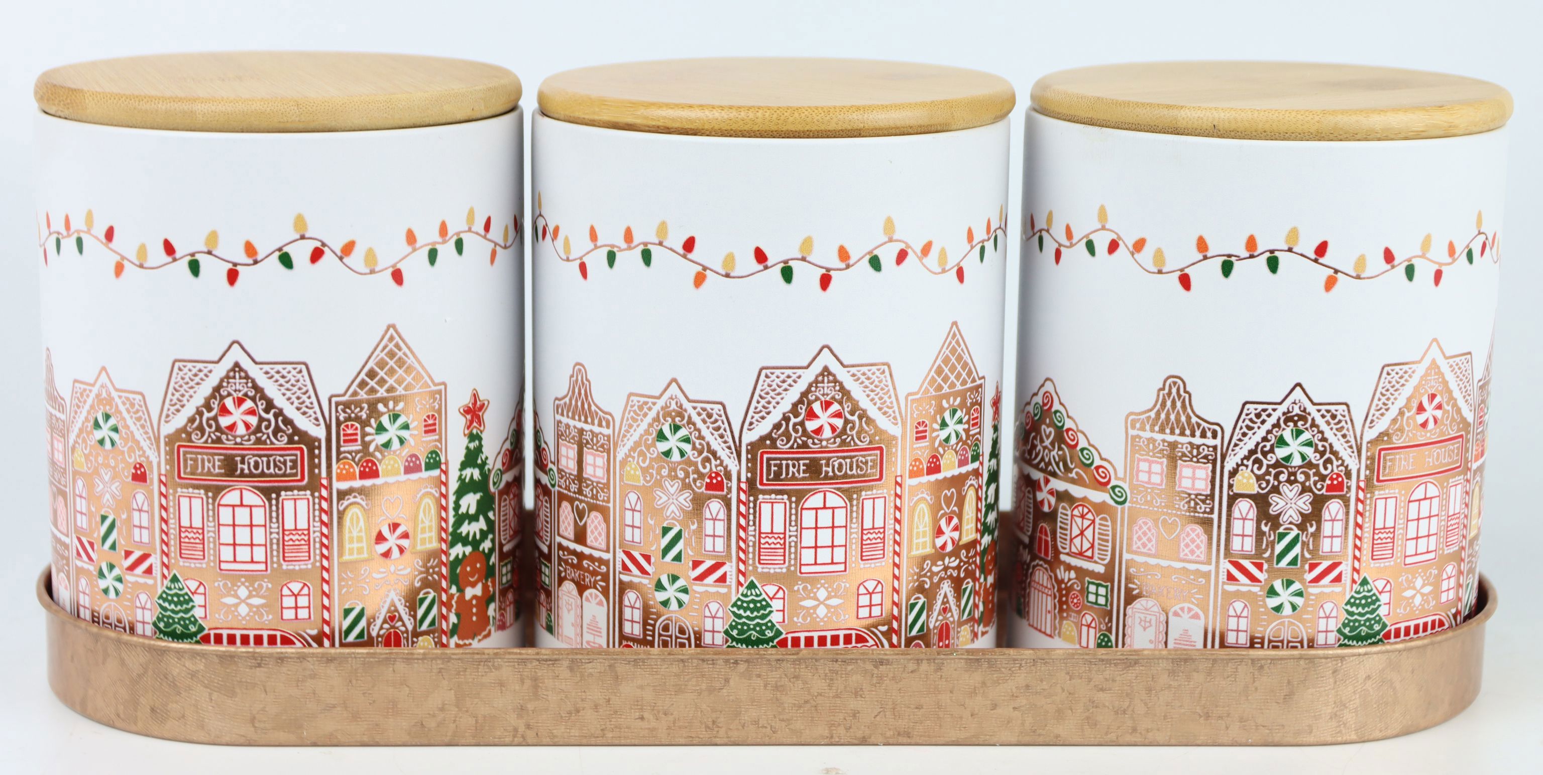 Enrich your shop assortment with the "NOEL VILLE" tin ensemble, a unique collection of four stylish tins specially designed for the festive season. Our set consists of four tins with the enchanting motif of gingerbread houses, creating a festive atmosphere. These decorative tins are not only perfect for storing biscuits, sweets or other small treasures, but are also a real eye-catcher in any home.