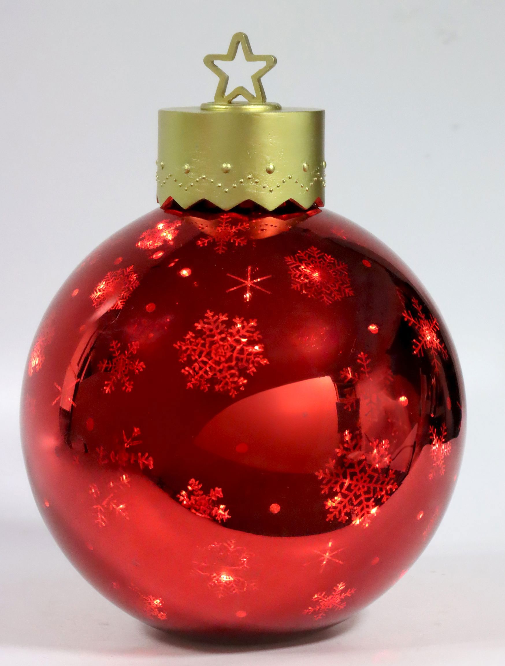 The "Snowflake" LED light ball is made of high-quality glass and robust plastic, which emphasises its durability and resistance. The ornate red sphere is decorated with shimmering snowflakes that create a cosy and inviting feeling in any setting. The integrated LEDs provide a warm, atmospheric light that will make your window display stand out and create a cosy atmosphere that will attract shoppers.