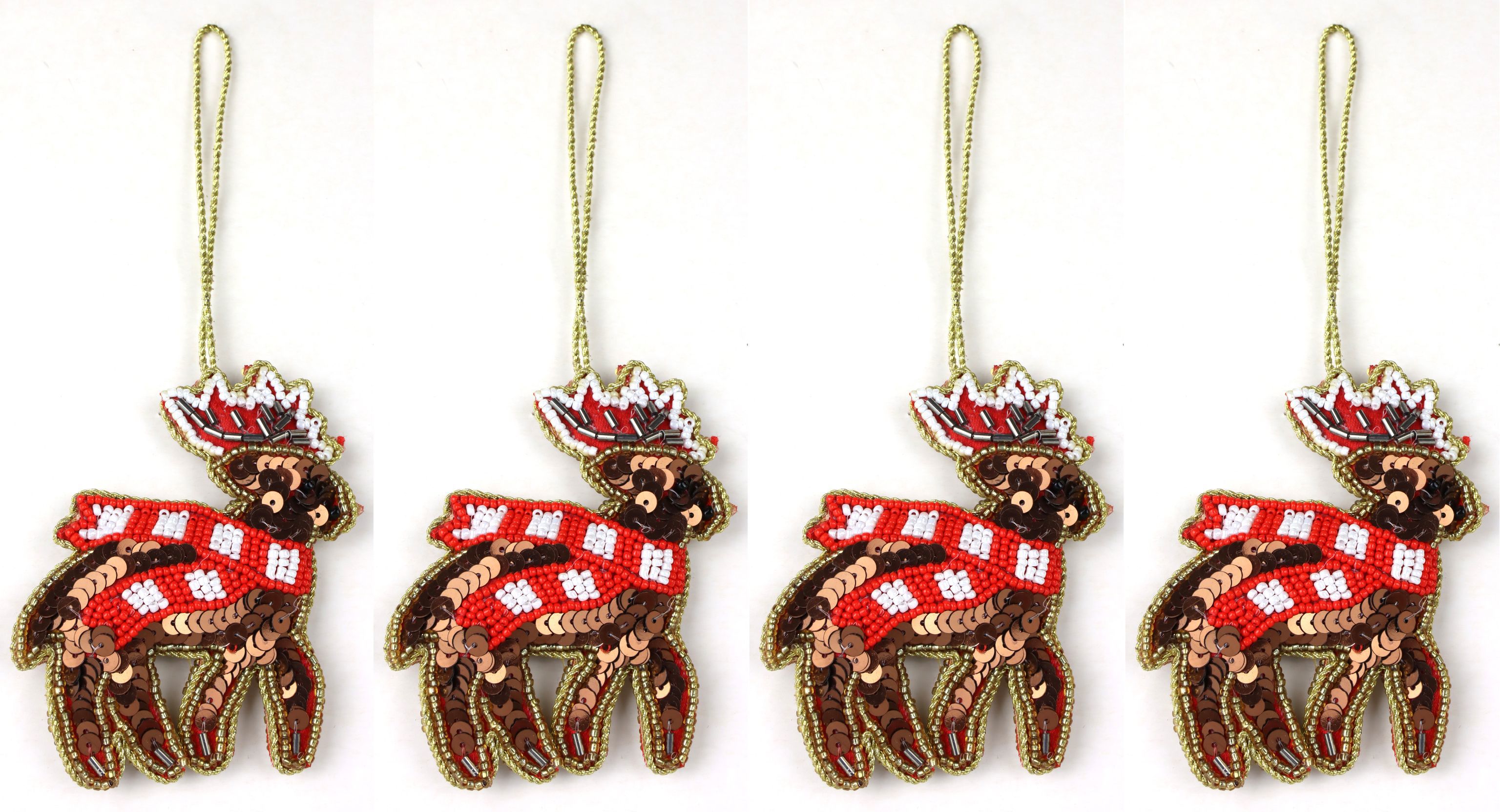 The festive magic of the winter season is only complete with the right decorative elements. Our exclusive "XMAS-DEERS" bead hanger set brings this magic to any room and tells a story of elegance and cosiness. These handmade bead hangers in a set of four detailed reindeer are the perfect decoration to adorn your Christmas tree, windows or gifts in a unique way. The use of high-quality sequins in warm brown and red tones gives these reindeer ornaments a luxurious yet rustic charm, in keeping with the Christmas atmosphere.