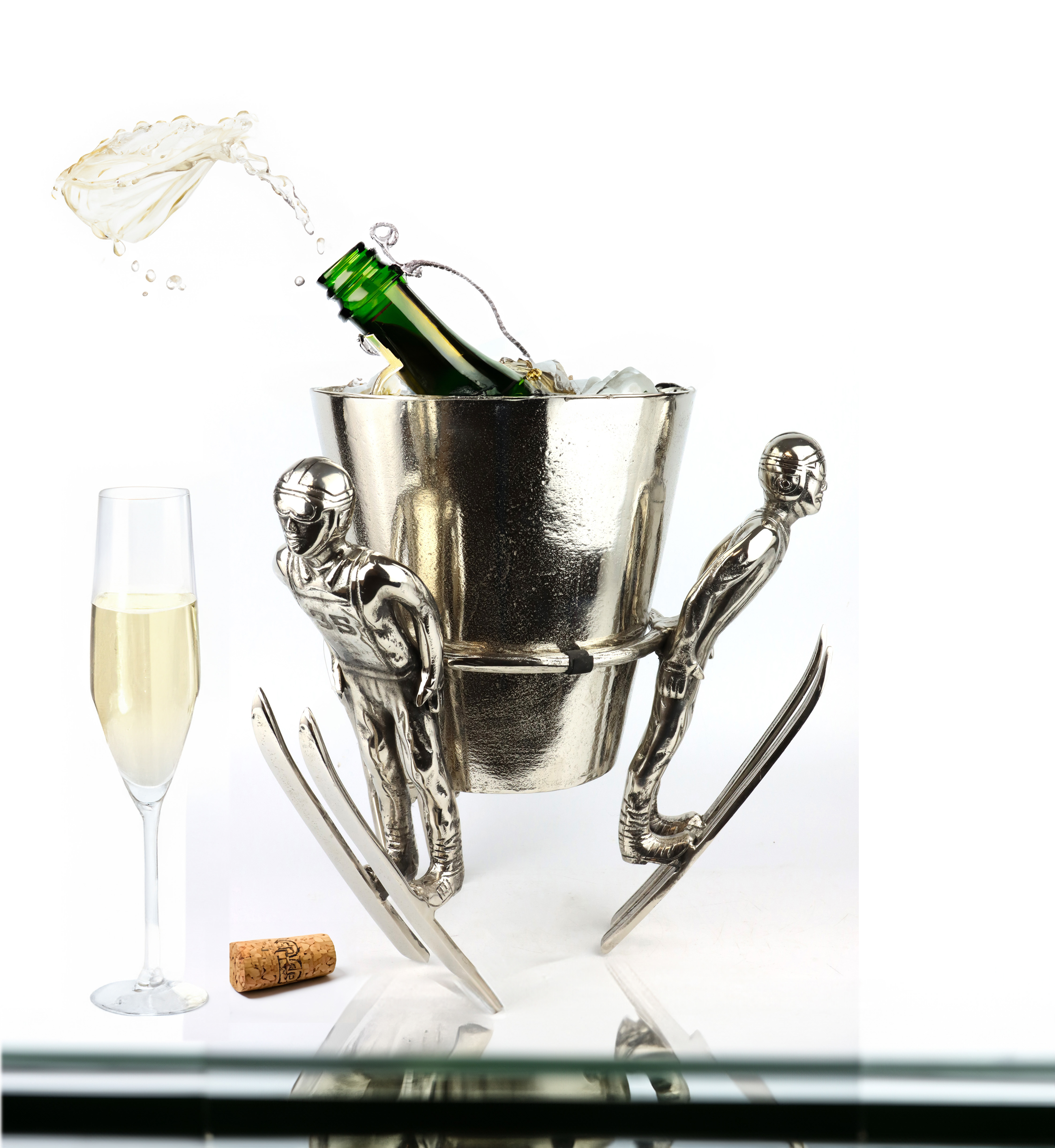 The "Gipfelglanz" bottle cooler is perfect for the autumn and winter season, when the evenings get longer and the focus is on cosy get-togethers. Its robust workmanship guarantees durability, while the glossy finish creates a luxurious atmosphere. Particularly noteworthy is the ski-jumper design, which combines sporty elegance and alpine inspiration - a tribute to the winter lovers among your customers.