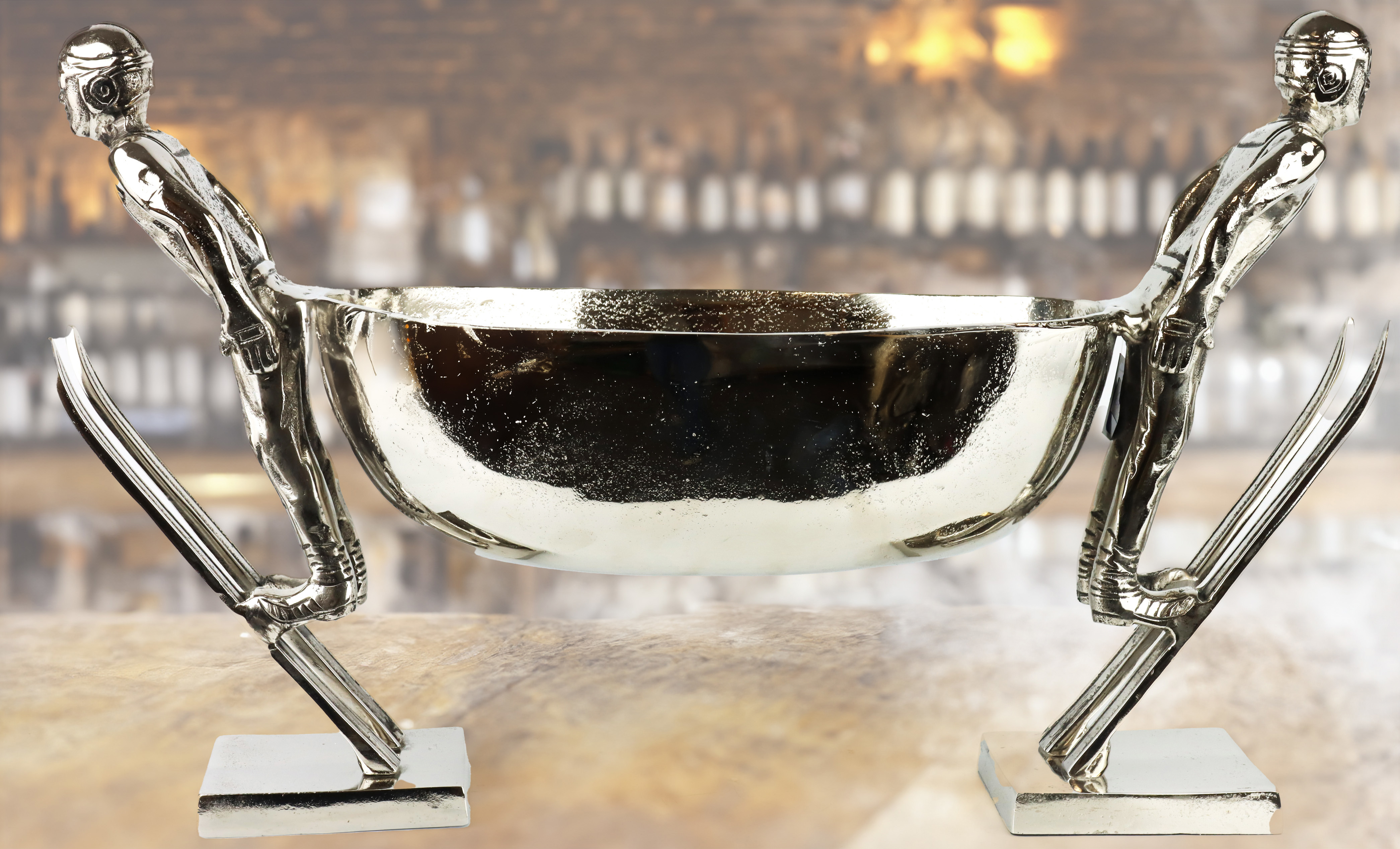 Give your shop or lifestyle boutique a shiny centrepiece with the elegant "Gipfelglanz" goblet bowl in silver. This extraordinary sculpture with a height of approx. 60 cm is not only a decorative highlight, but also a symbol of success and excellence. Made from high-quality aluminium, this goblet bowl combines the charm of winter sports with an elegant, modern design.