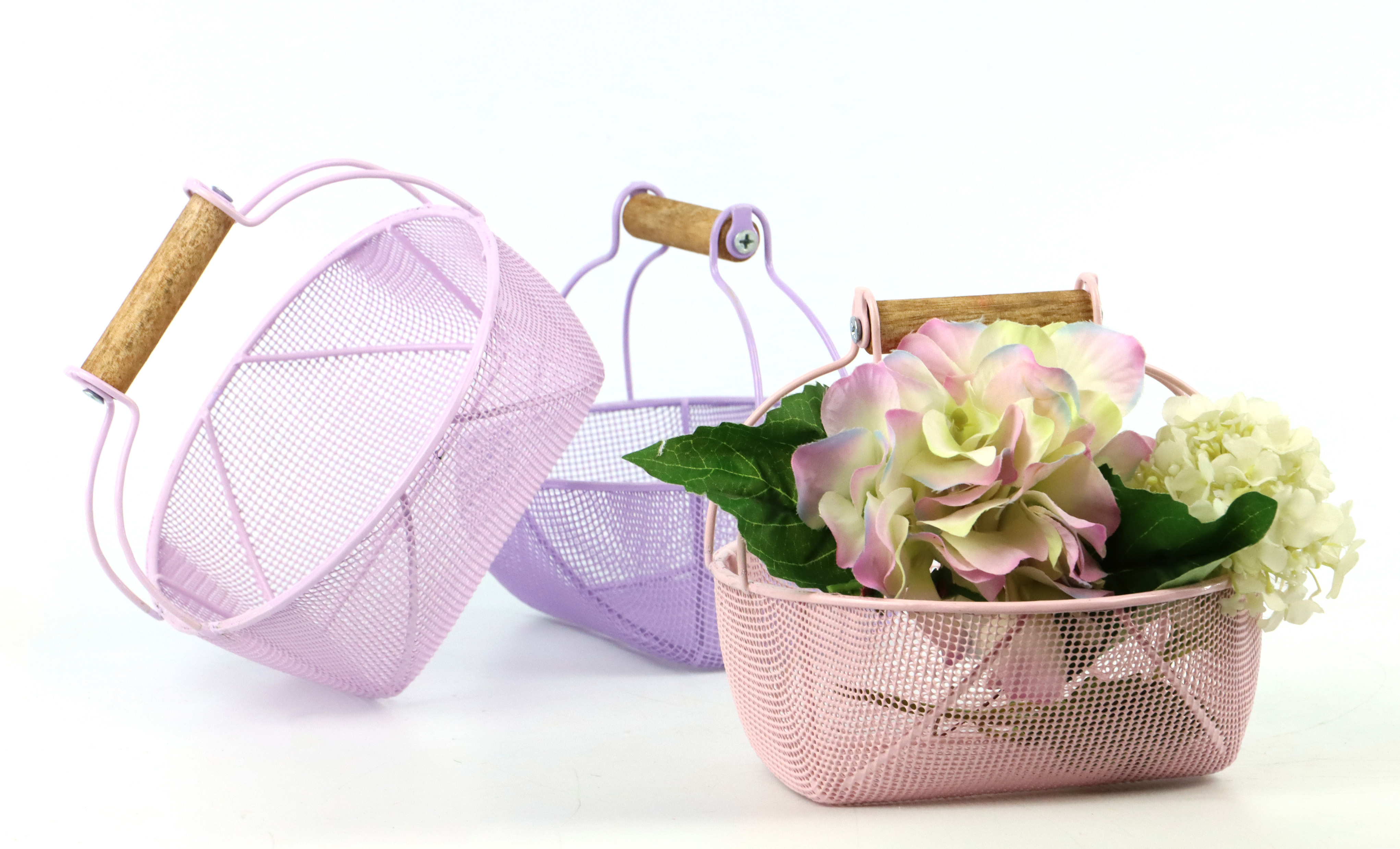 Los acentos de color morado del conjunto facilitan la integración perfecta de las CESTAS CON ASAS "PRINTEMPS" en diferentes conceptos de tienda, ya sean minimalistas, modernos o lúdicos. Además, no sólo son estéticas, sino que ofrecen una calidad duradera que enriquecerá su tienda a largo plazo.