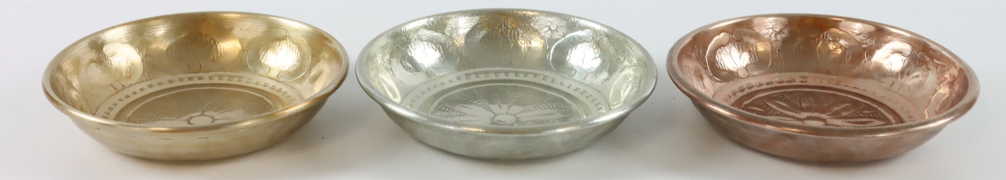 - Juego de cuencos de 3 piezas en los colores oro, plata y bronce