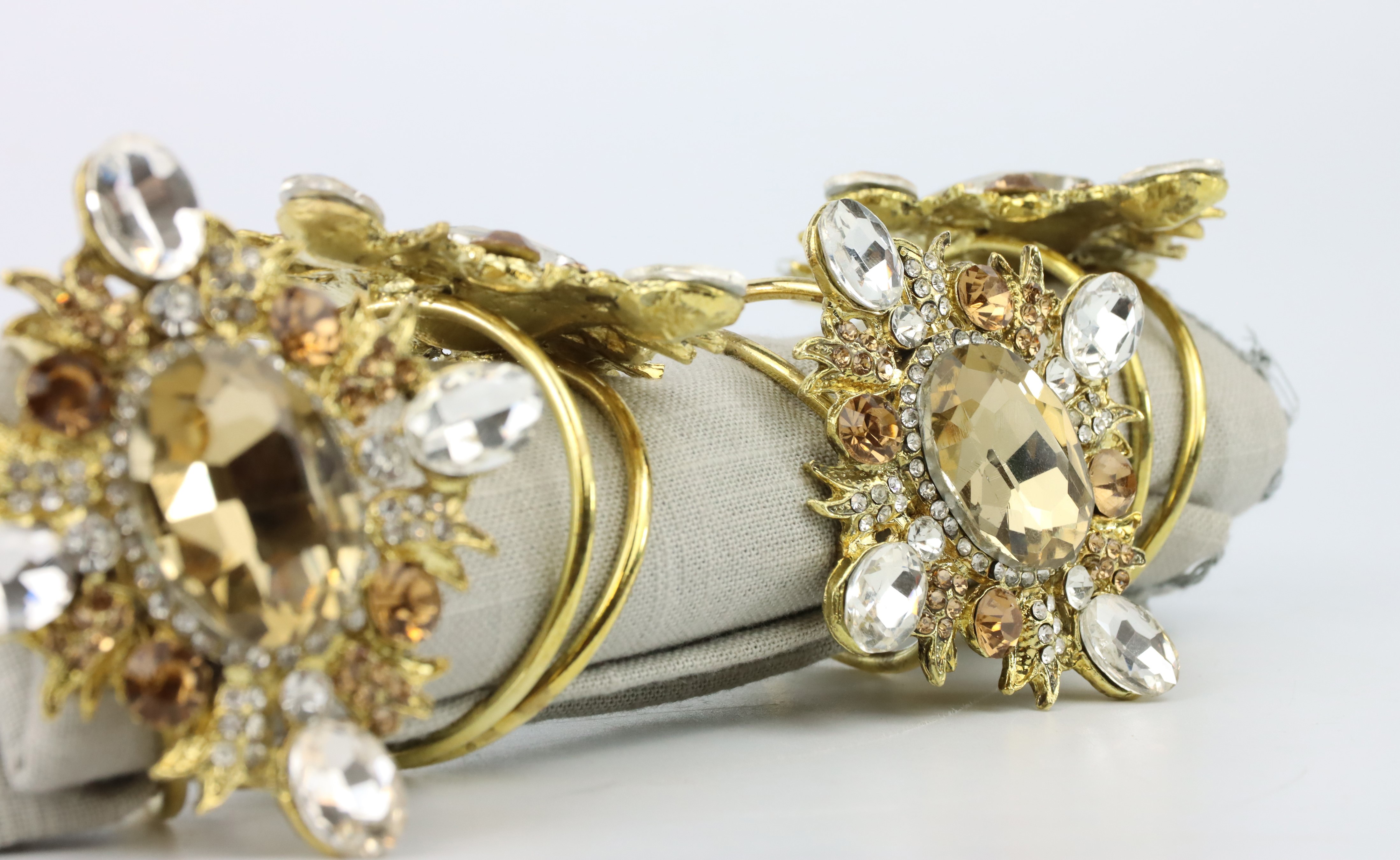 Servilleteros, decoración de mesa, hogar y estilo de vida, mesa festiva, venta al por menor, accesorios de color dorado.