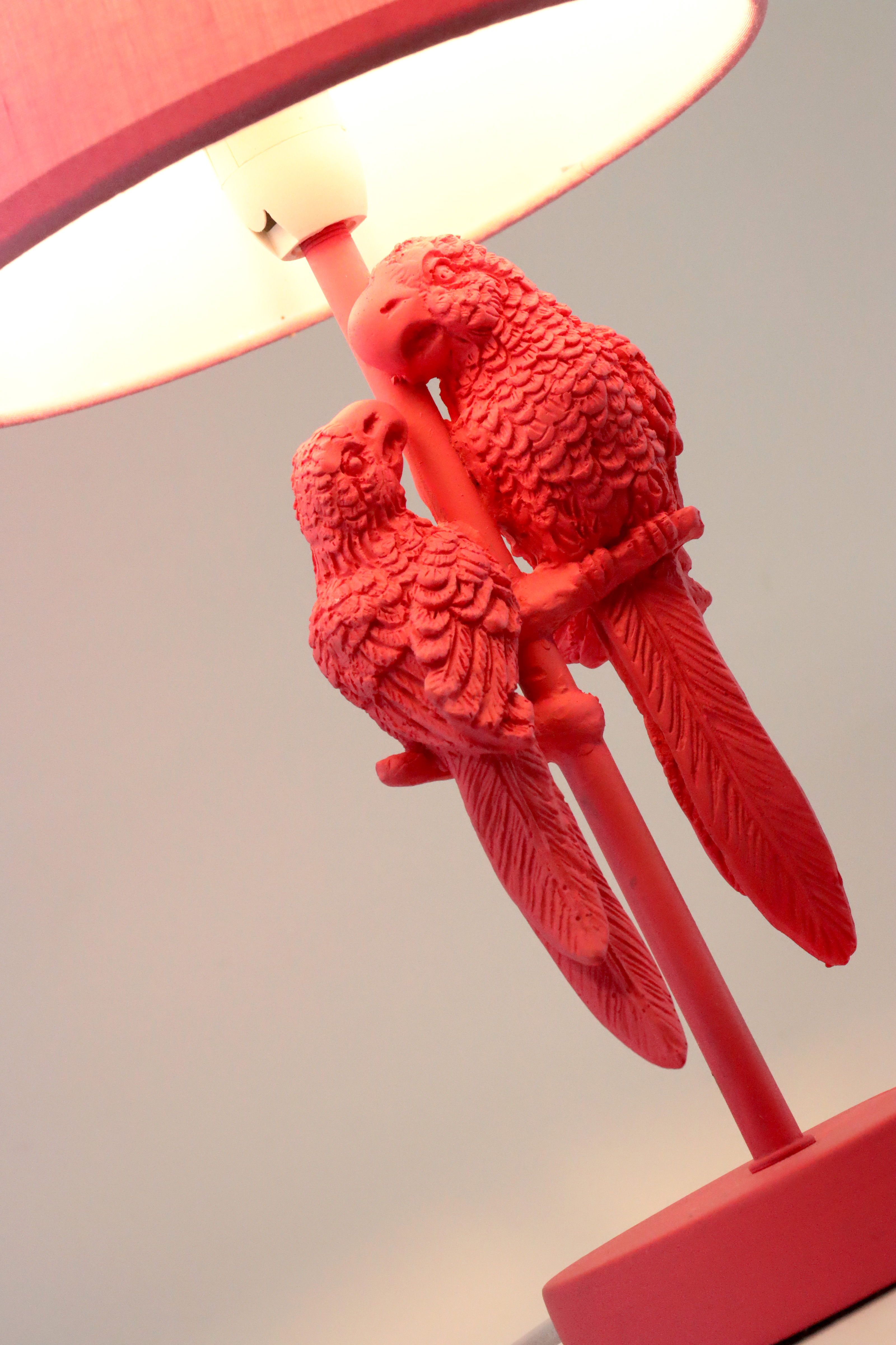 Fabricada con materiales de alta calidad como metal, plástico y algodón, la lámpara "BIRDY" refleja estabilidad y elegancia. El color rojo en combinación con el detallado diseño del loro atrae la atención de todos y se convertirá sin duda en un tema de conversación entre tus visitas. Con una altura de aprox. 37 cm, es ideal como lámpara de sobremesa que destaca tanto sobre una mesa auxiliar como sobre una cómoda.