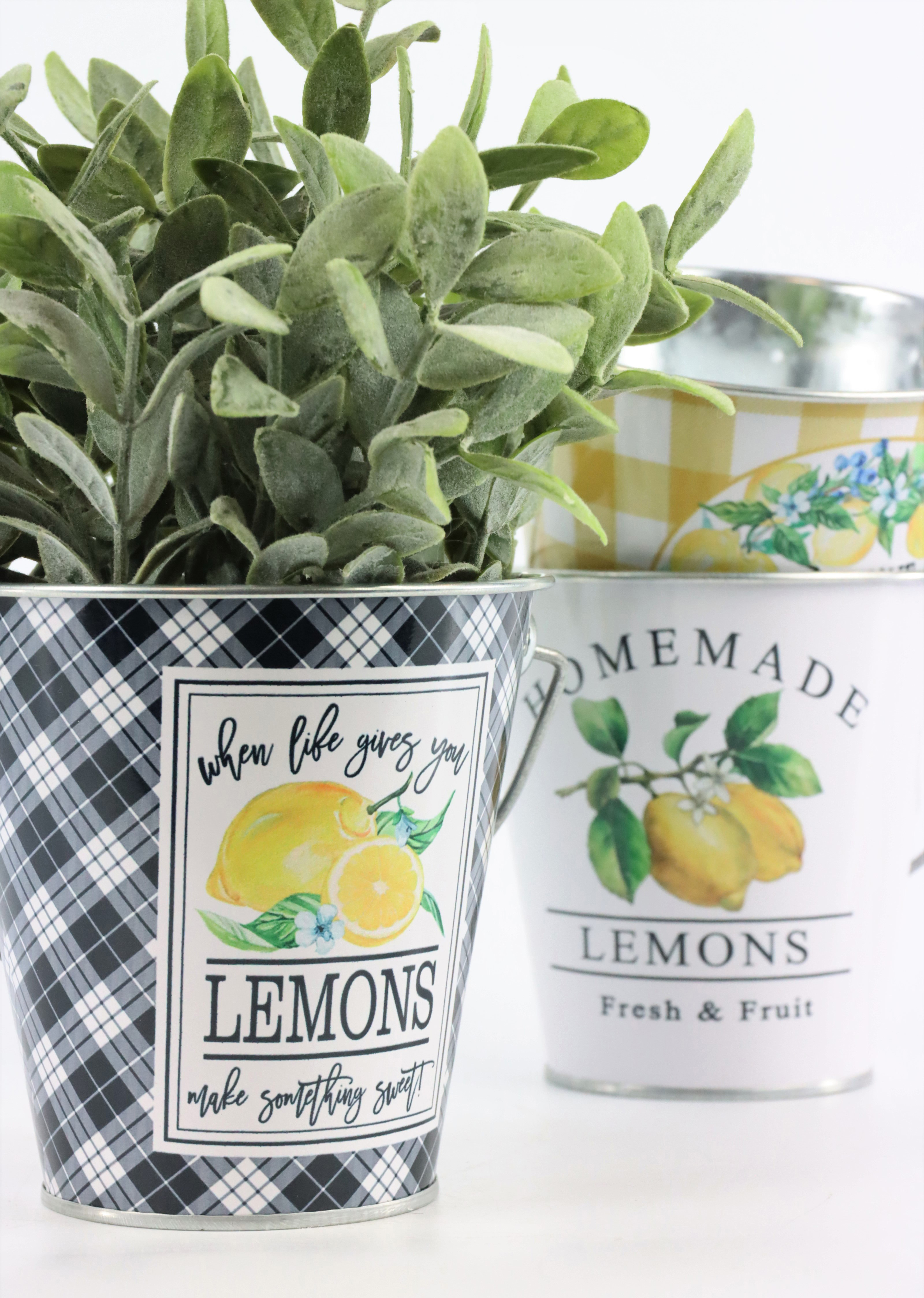 Añada un ambiente fresco y elegante a su tienda física con el encantador juego de cubos de asas de 3 piezas "Sweet Lemon". Este encantador set es el complemento perfecto para tiendas de hogar y estilo de vida, y es ideal para la temporada de primavera y verano. Los alegres cubos de zinc con su vibrante motivo de limón no sólo son funcionales, sino que también atraen todas las miradas.