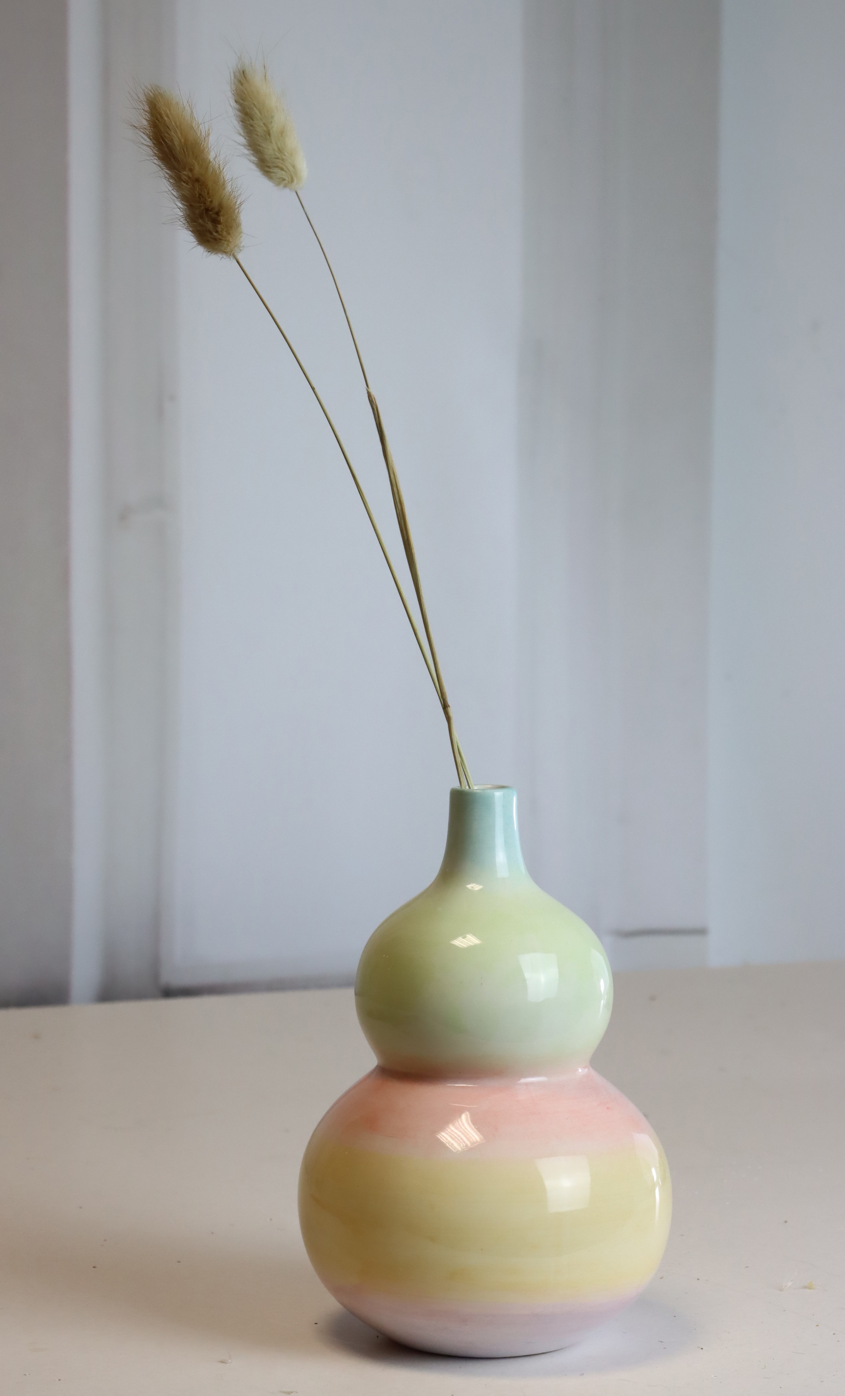 Fabricado en cerámica de alta calidad, el jarrón impresiona por su diseño minimalista y su perfecta artesanía. Con una altura aproximada de 16,5 cm, tiene el tamaño perfecto para exhibir con estilo tanto tallos cortos como largos. La superficie lisa y ligeramente brillante refleja discretamente la luz, creando un conjunto armonioso e impactante. El jarrón se presenta en un color neutro que combina a la perfección con cualquier interior, ya sea de estilo escandinavo o industrial chic moderno.