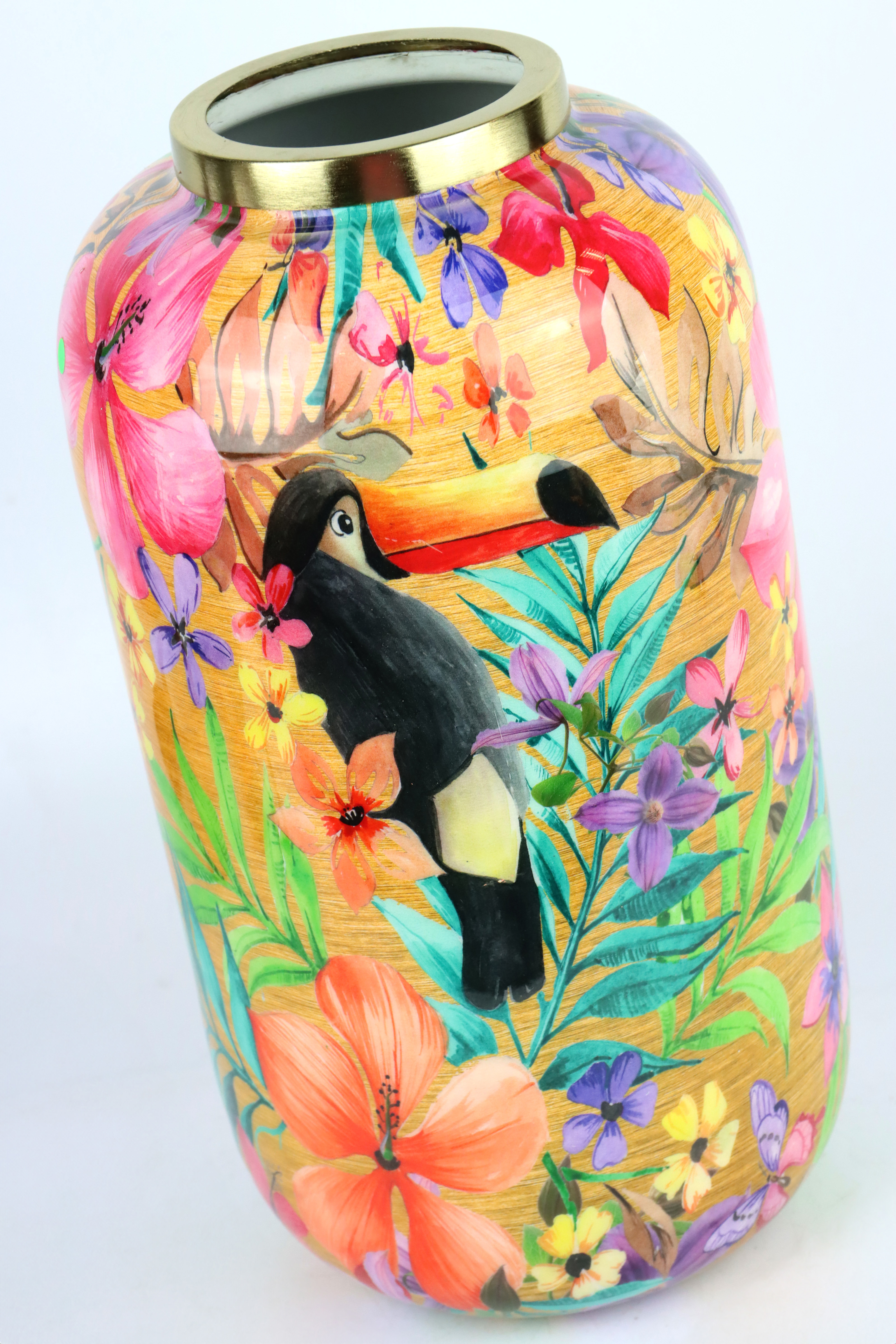 - Jarrón decorativo con motivo de ave del paraíso fabricado en hierro de alta calidad