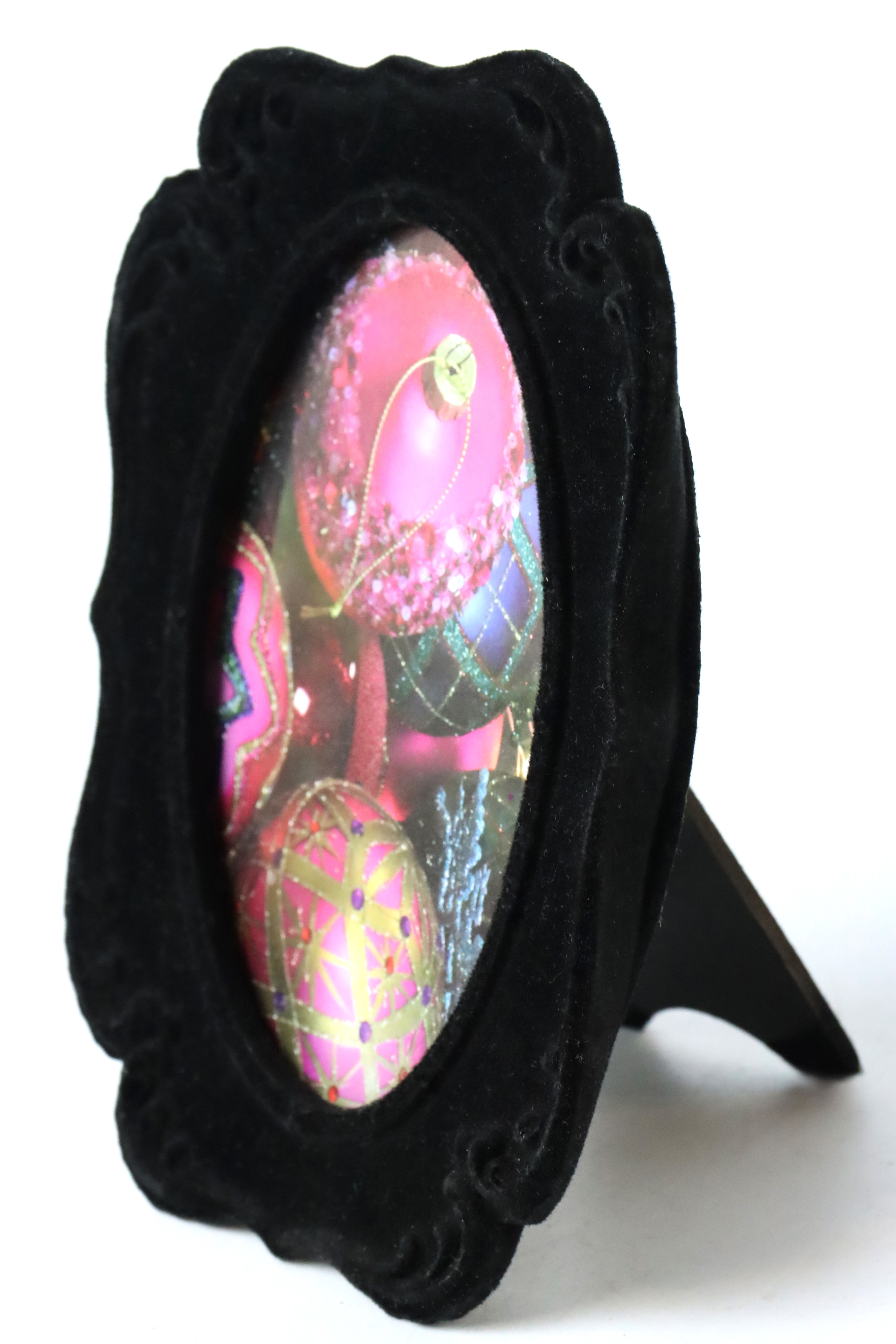 4. descripción: Marco negro de plástico robusto, dimensiones aprox. 18x12cm.