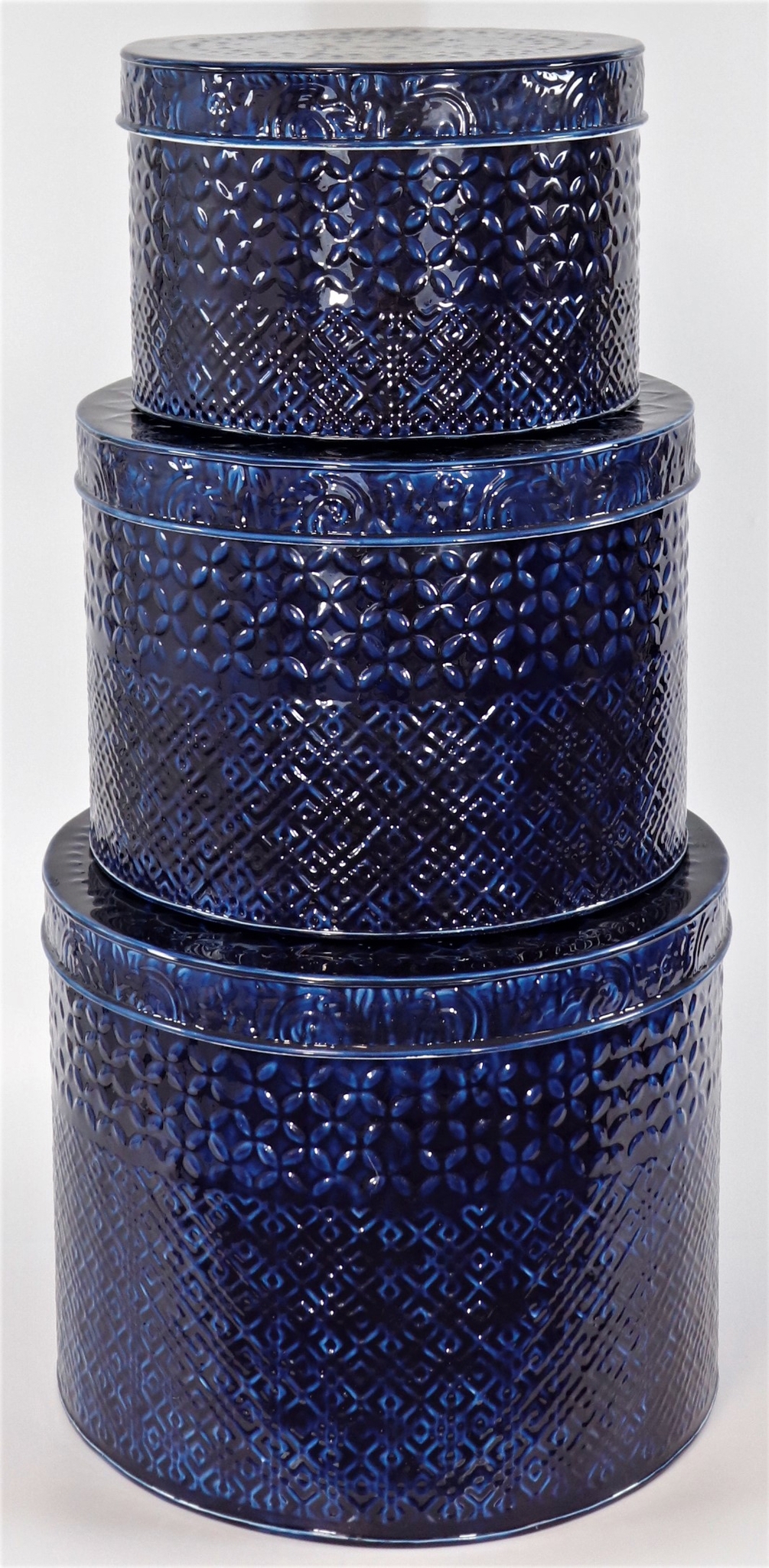 Experimente la combinación perfecta de funcionalidad y estilo con nuestro juego de latas "Fez". Este juego de tres piezas no sólo le ofrece prácticas soluciones de almacenamiento, sino que también es un reclamo estético que marcará la pauta en cualquiera de las habitaciones de sus clientes. Las latas están diseñadas en un sofisticado color azul y encajan a la perfección en los conceptos de vida modernos, lo que las convierte en una gama ideal para los minoristas del sector del hogar y el estilo de vida.