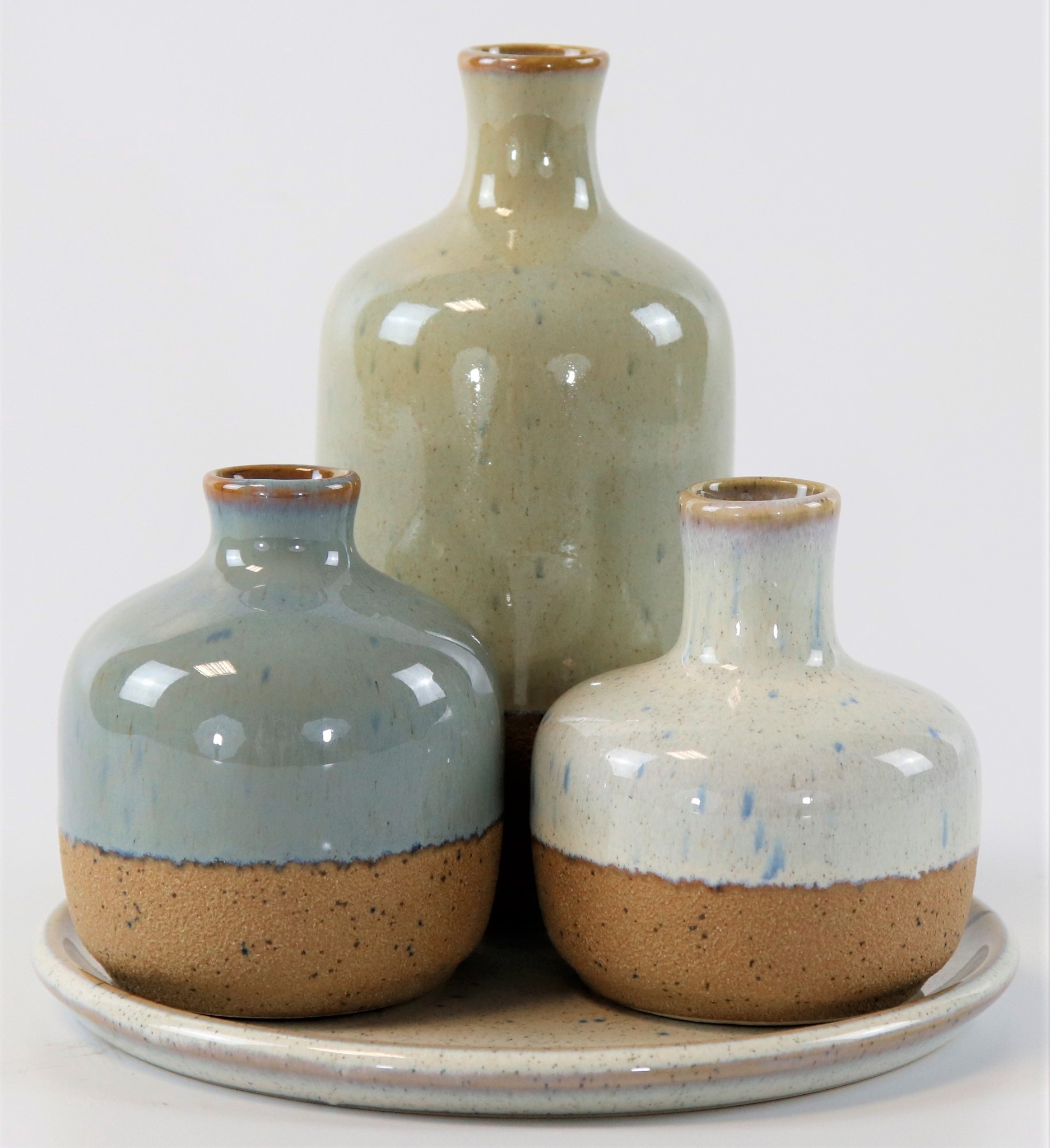 Destaca especialmente el plato de 15 cm de diámetro que acompaña al conjunto y que realza a la perfección los jarrones. El conjunto no sólo ofrece numerosas opciones de diseño, sino también la oportunidad de presentar de forma creativa flores o plantas que traigan la primavera al hogar. Gracias a su combinación de colores atemporal, los jarrones combinan con casi cualquier estilo de interiorismo y pueden combinarse maravillosamente con otros elementos decorativos.